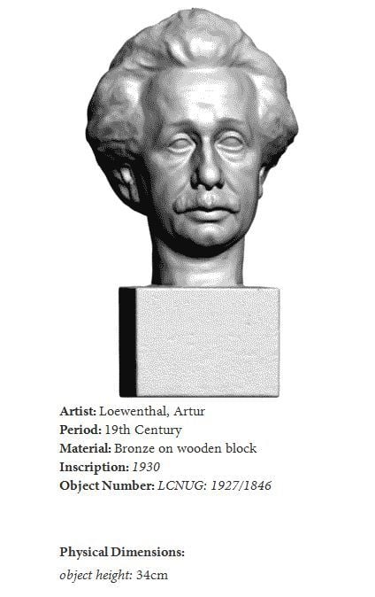 3D skenovaná busta Alberta Einsteina, která dříve stála v Usher Gallery a The Collection v Lincolnu ve Velké Británii. Busta je přesnou reprodukcí původní bronzové sochy, kterou vytvořil Artur Loewenthal v roce 1930.