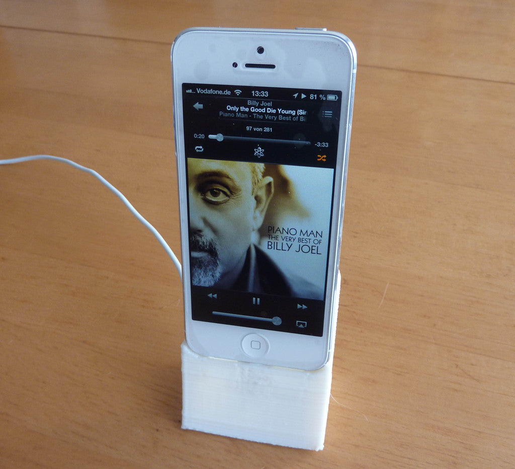 Stojánek pro iPhone 5 a 5S s otvory pro konektor Lightning a reproduktory. Funguje jako dokovací stanice a umožňuje synchronizaci a nabíjení iPhonu při nasazení. Vyrobeno z pevného a odolného materiálu - ideální do kanceláře nebo na noční stolek.