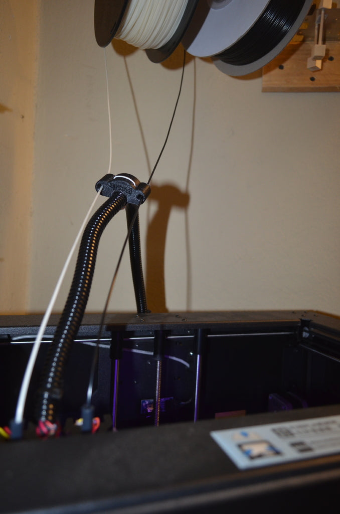 Tento vodič filamentu je určen pro Flashforge Creator Pro a pomáhá udržovat filament blízko elektrické trubice během procesu tisku. Je obzvláště užitečný, pokud jste zvolili nástěnný držák cívky, protože originální držáky cívek pro Flashforge Creator Pro se často nehodí pro všechny značky filamentů. Použitím tohoto vodítka dosáhnete stabilnějšího přívodu filamentu, což může zlepšit kvalitu tisku. Funguje jako efektivní držák drátu pro váš filament a pomáhá předcházet zamotání, zejména při použití alternativního nastavení cívky drátu.