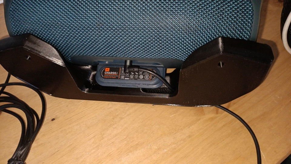 Toto je pohodlný držák pro reproduktor JBL Charge 4. Držák lze snadno připevnit ke stolu, psacímu stolu nebo dokonce na zeď pomocí dvou šroubů. Na zadní straně jsou také dva průchody pro kabely, takže je snadné připojit nabíjecí kabel a USB kabel. Uspořádejte si prostor pomocí tohoto chytrého řešení.