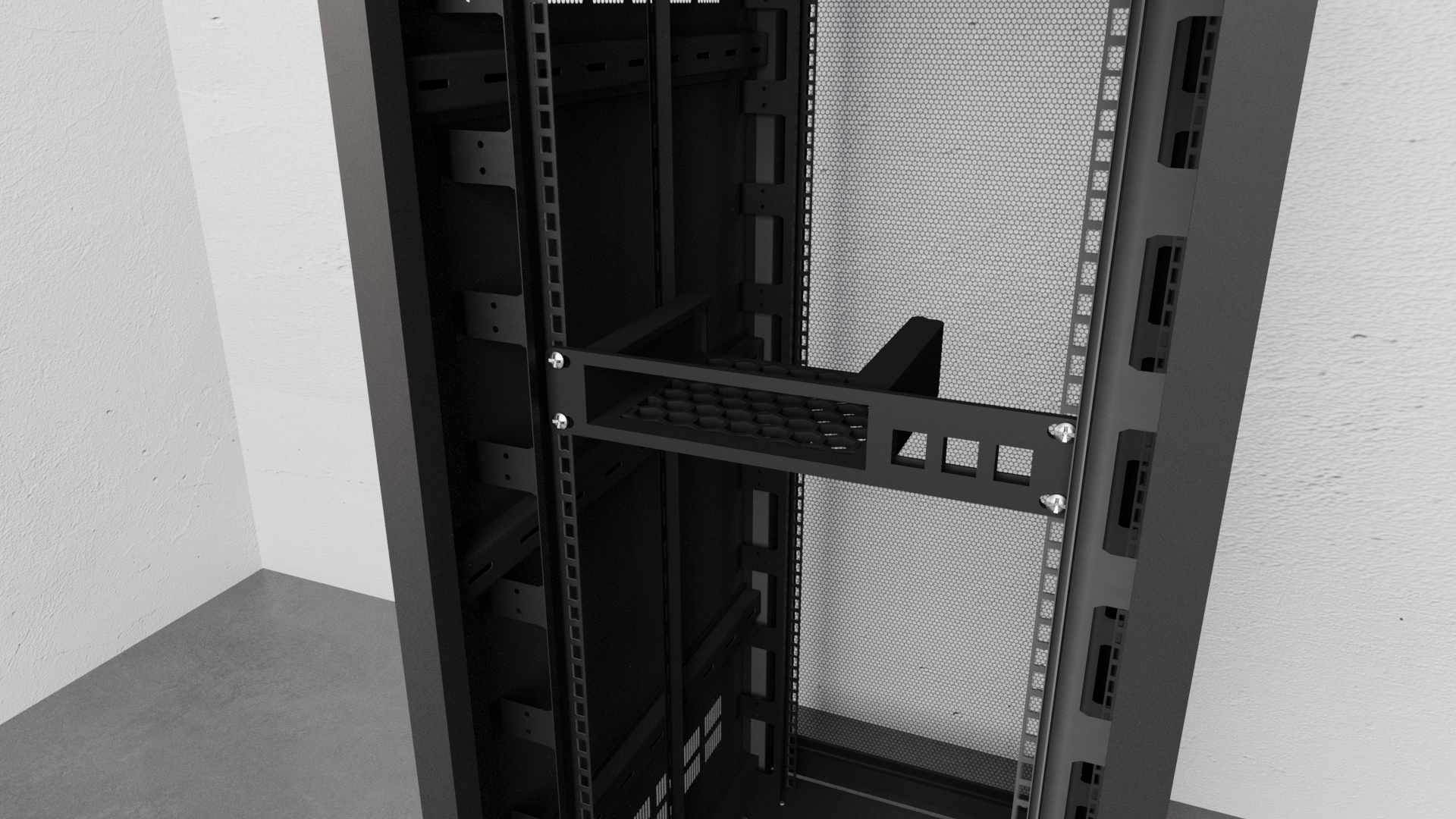 - Zajišťuje robustní a organizovanou integraci síťového vybavení do rackové skříně.