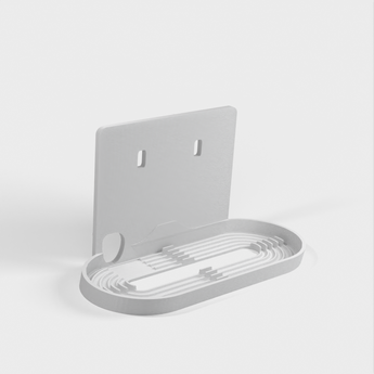 Jednoduché řešení montáže rozbočovače Nest / Google Home Hub na desky IKEA Skadis. Rozbočovač se umístí co nejblíže k desce a kabel lze vést jedním ze stávajících otvorů Skadis, takže žádné dráty nejsou vidět. Vyžaduje dva univerzální háčky pro úhlednou instalaci.