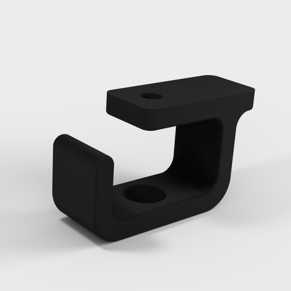 Tento hák pro správu kabelů je navržen pro uspořádání kabelů o průměru až 8 mm. Hák lze přišroubovat přímo na polici IKEA Ivar pomocí vrutu do dřeva 3,5 x 16 mm se zápustnou hlavou. K dispozici jsou dvě verze háku: normální verze, která vyžaduje šroubovák, a „líná“ verze s větším otvorem, který umožňuje použití standardního držáku bitů pro bezdrátový šroubovák.