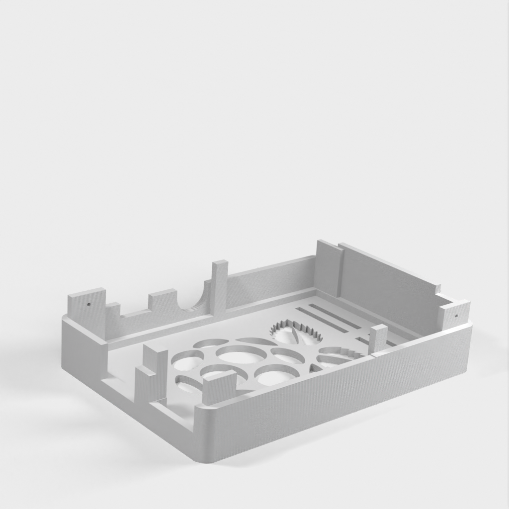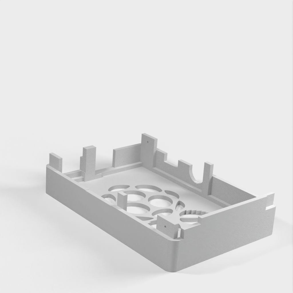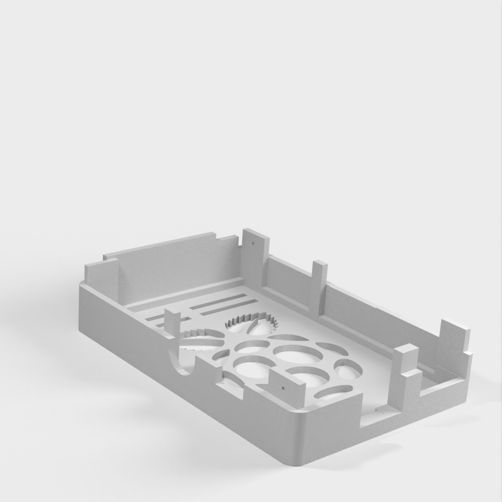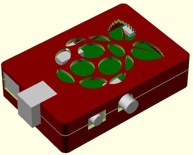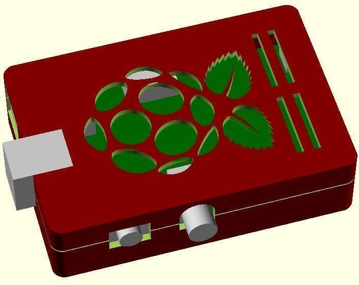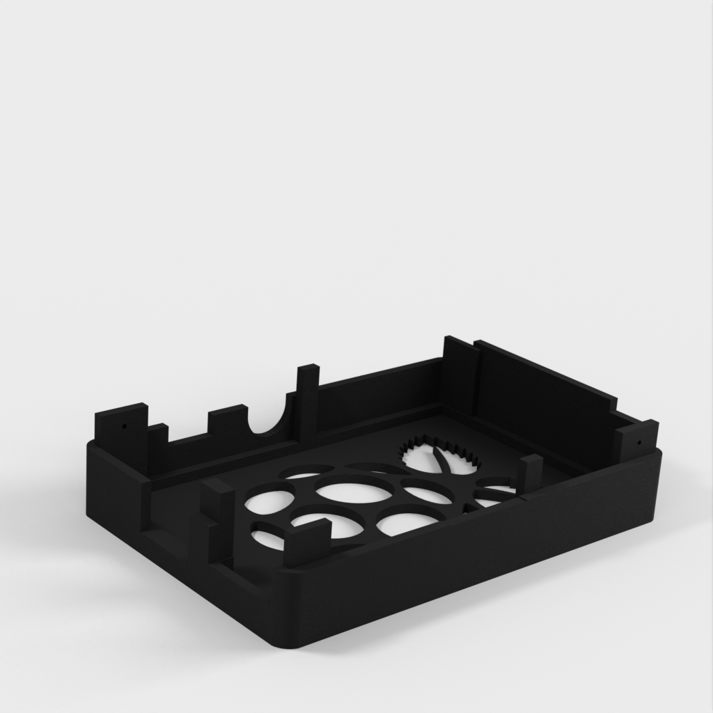 Toto je pouzdro pro Raspberry Pi, což je počítač velikosti kreditní karty. Pouzdro je navrženo s několika úrovněmi a s prostorem pro komponenty a konektory GPIO. Díky zachování malé rezervy u otvorů pro komponenty zajišťujeme, že se vždy vejdou. Má další možnosti pro otevřené logo a držák desky plošných spojů.