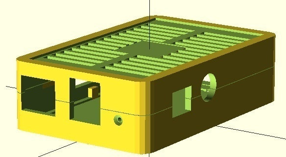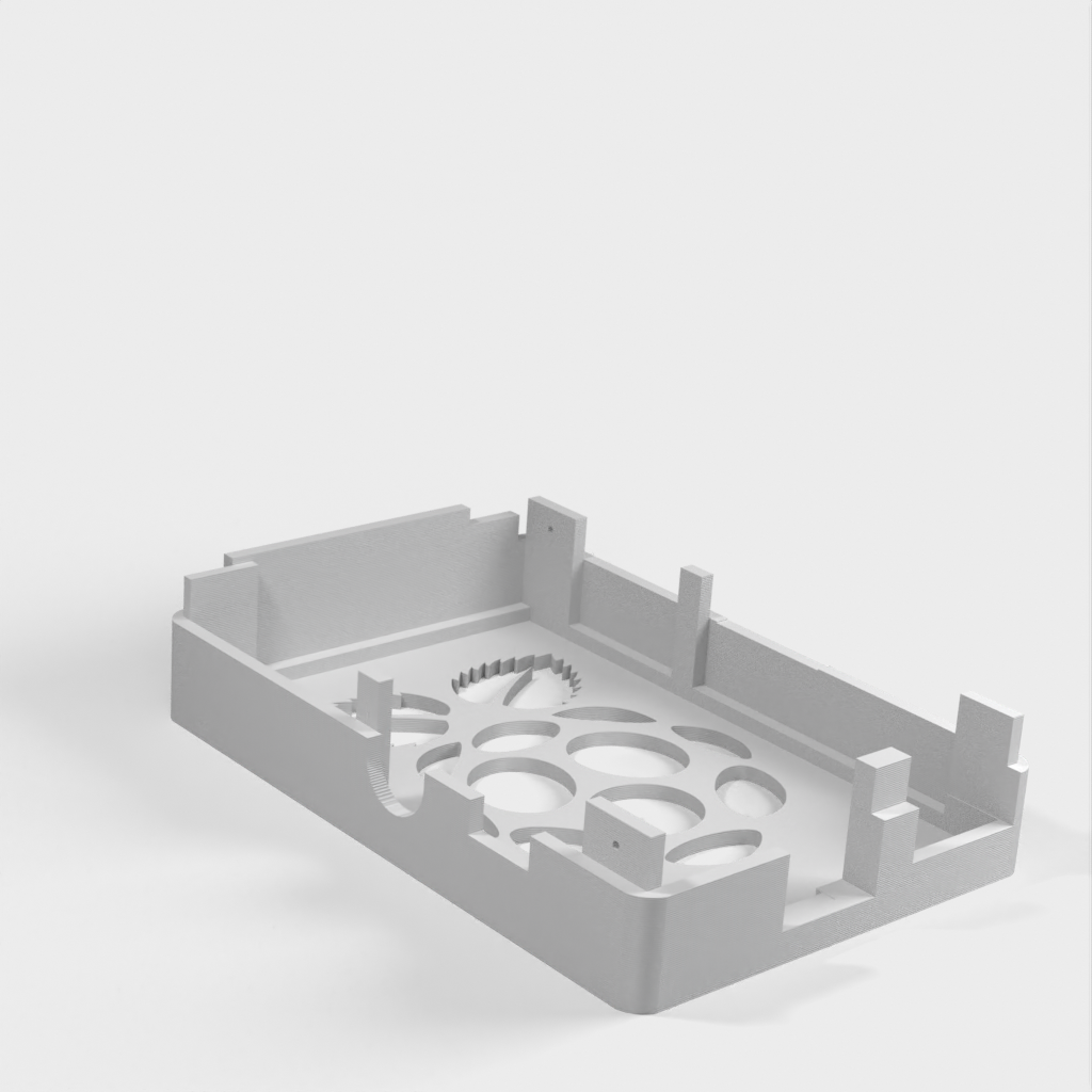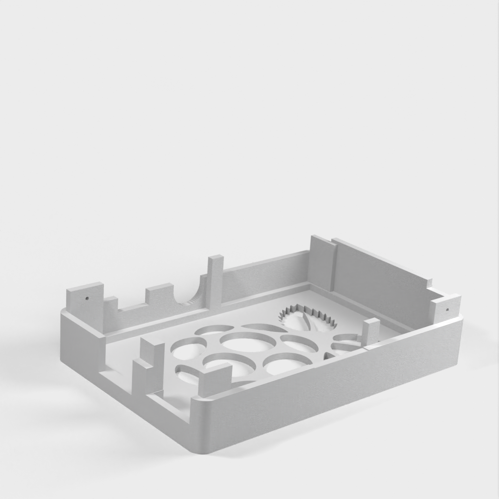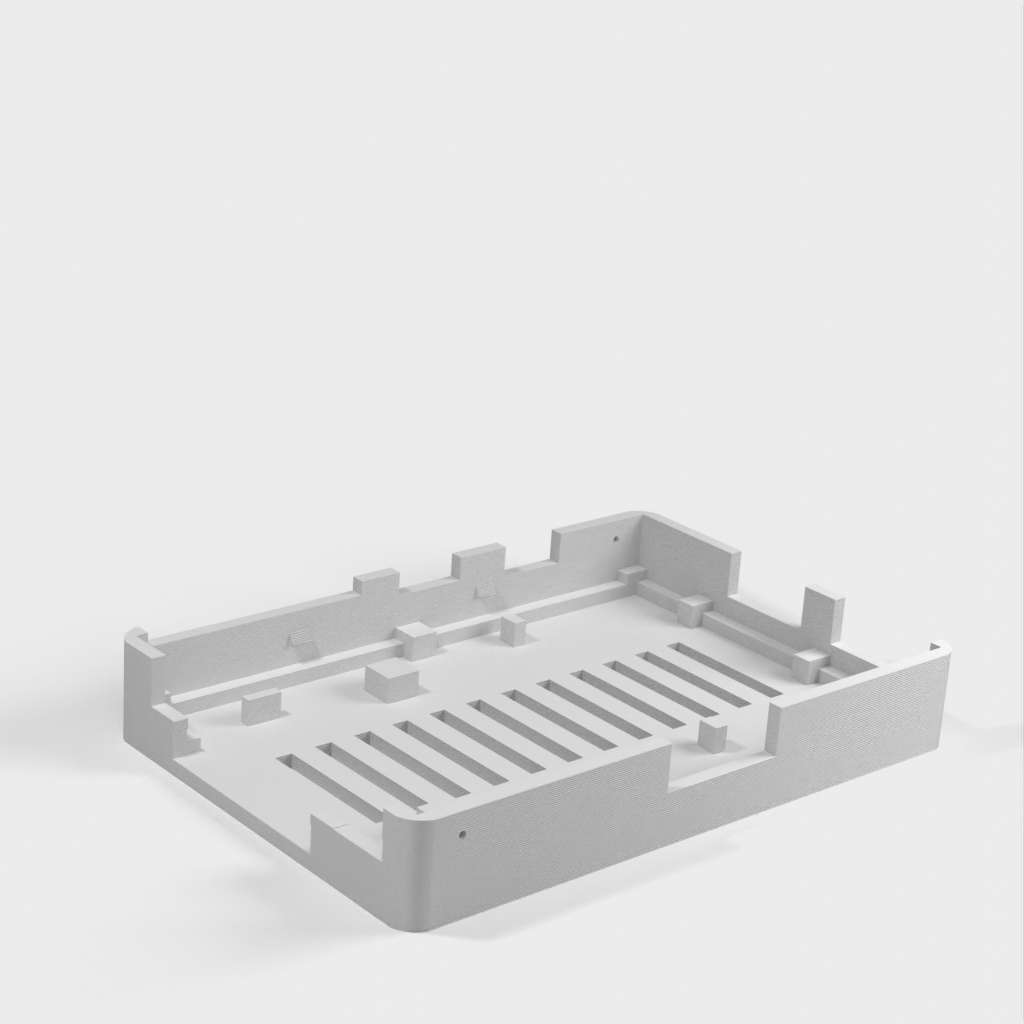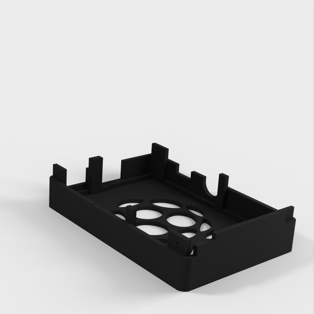 Toto je pouzdro pro Raspberry Pi, což je počítač velikosti kreditní karty. Pouzdro je navrženo s několika úrovněmi a s prostorem pro komponenty a konektory GPIO. Díky zachování malé rezervy u otvorů pro komponenty zajišťujeme, že se vždy vejdou. Má další možnosti pro otevřené logo a držák desky plošných spojů.