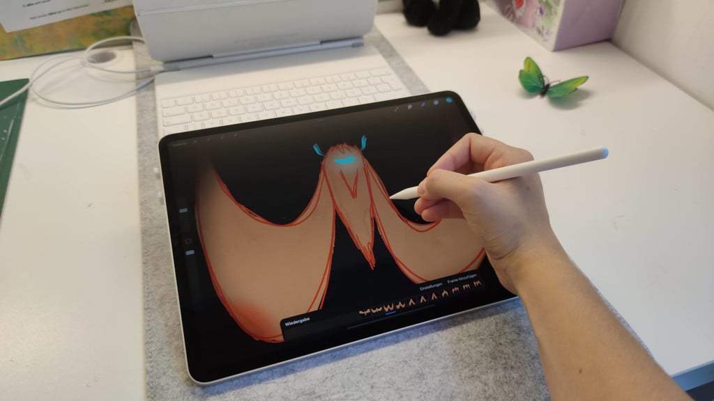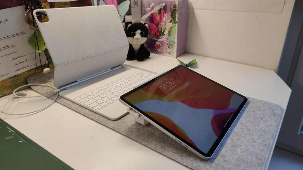 - Optimalizovaný úhel pro kreslení a psaní poznámek pomocí Apple Pencil.