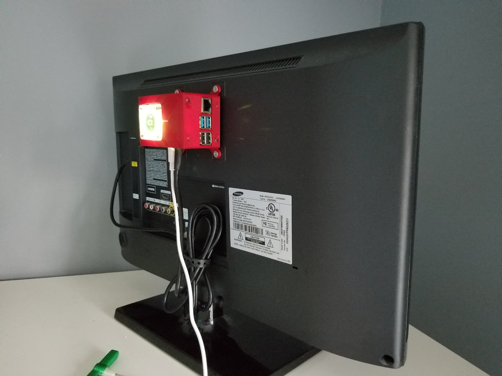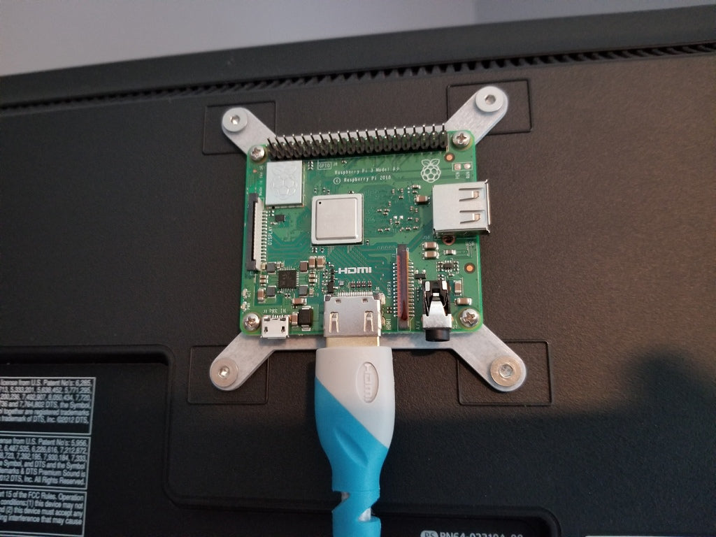 Držáky lze také použít k upevnění desky Raspberry Pi na televizor nebo monitor.