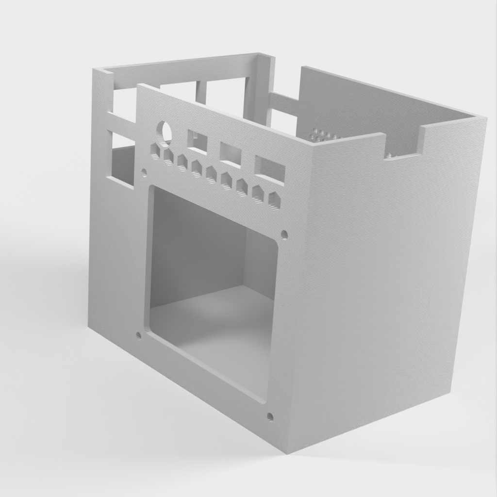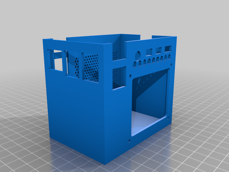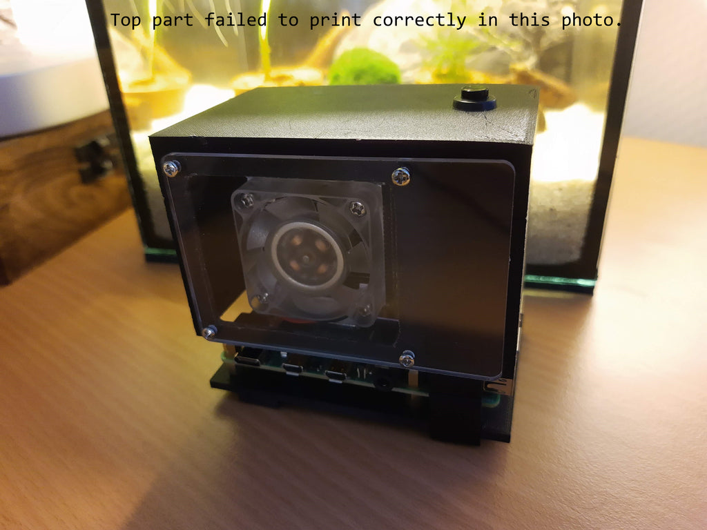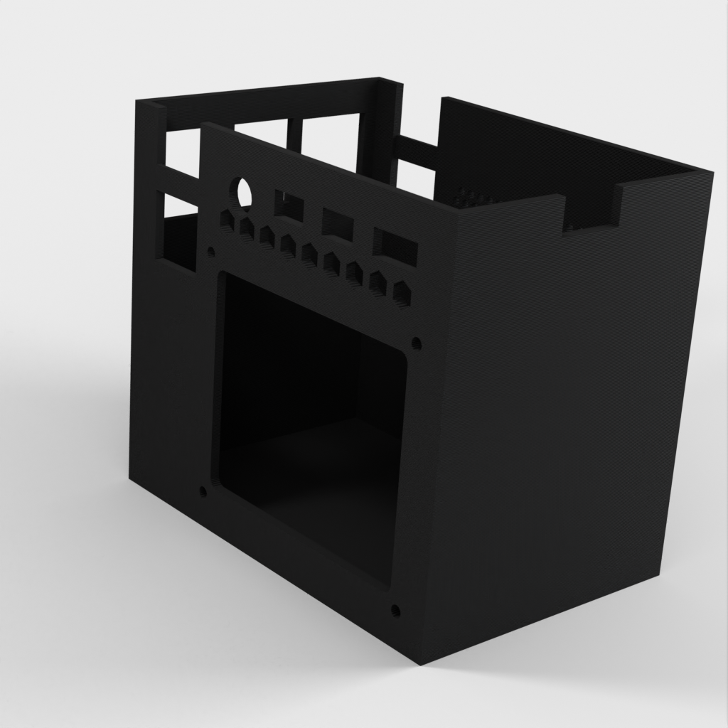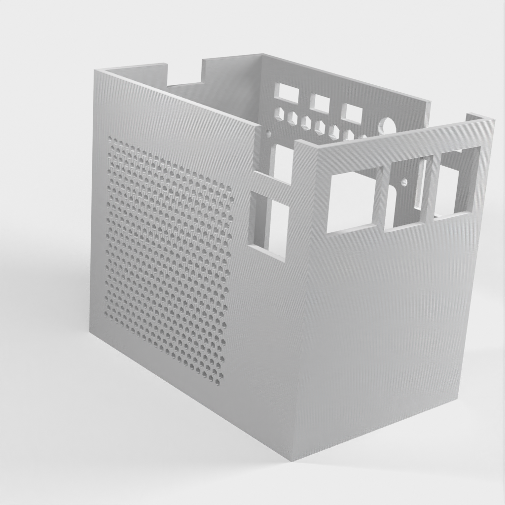Toto je minimalistické pouzdro pro Raspberry Pi 4, do kterého se vejde chladič Ice Tower. Horní konstrukce pouzdra má na zadní straně větší šestiúhelníky, což usnadňuje tisk. Po vytištění lze tyto šestiúhelníky odstranit a dodat pouzdru hezčí vzhled pomocí akrylové desky, která se dodává s chladičem Ice Tower namontovaným na boku pouzdra. Klipy a spodní část kufříku jsou upraveny tak, aby k sobě lépe přiléhaly a podporovaly více průměrů gumových nožiček.