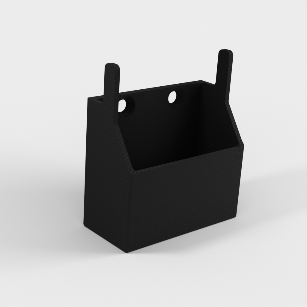 Držák dálkového ovladače je praktický a robustní držák na stěnu určený pro dálkové ovladače o rozměrech 55x20 mm. Rozteč šroubů je 25 mm, což zajišťuje stabilní a bezpečné upevnění. Tento nástěnný držák je ideální pro přehledné a organizované uložení vašich dálkových ovladačů.