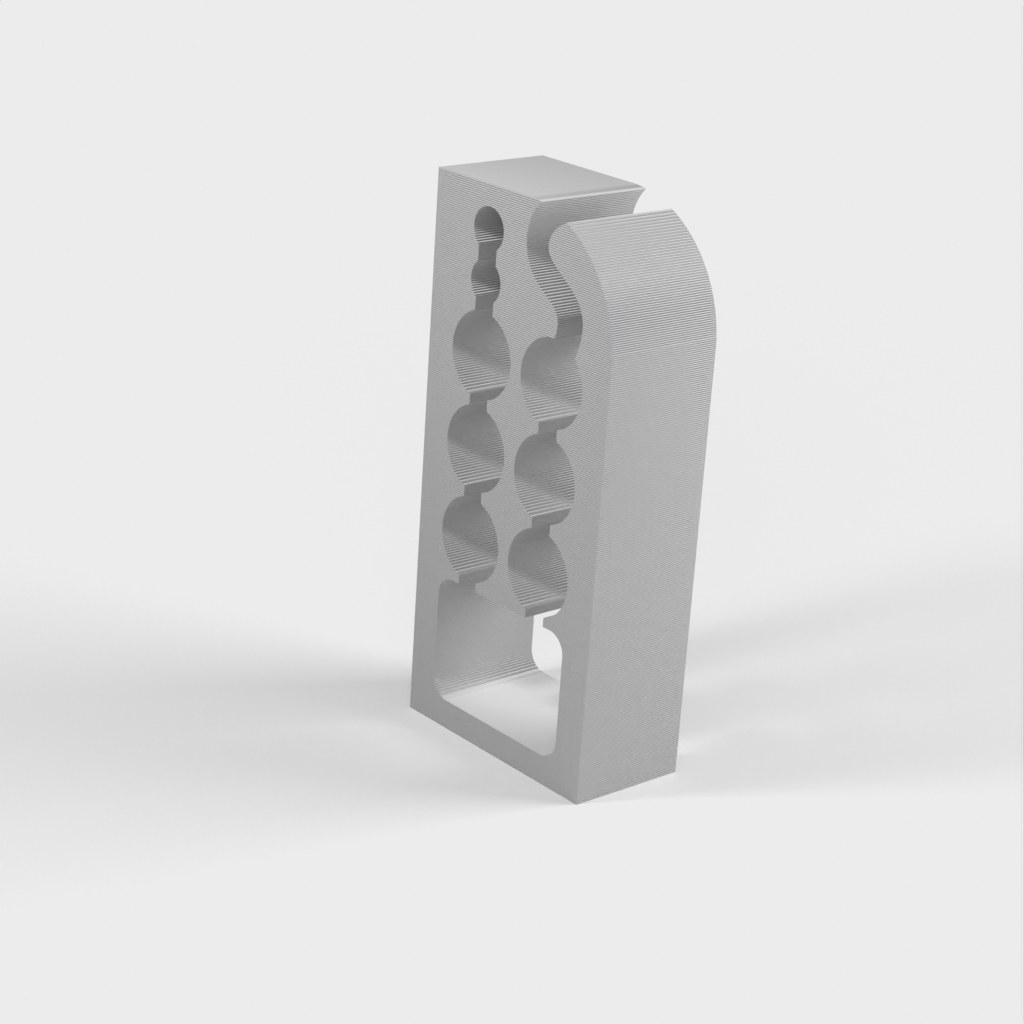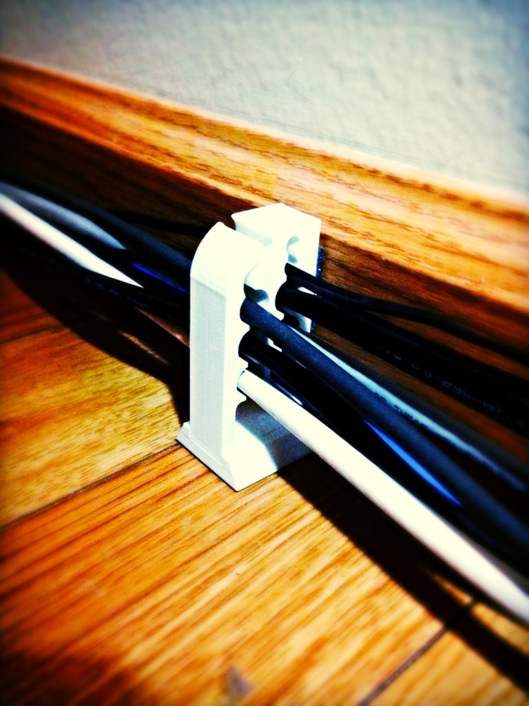 Organizér kabelů pro montáž na základní desku, který dokáže uspořádat hromadu počítačových kabelů vedoucích podél lišt ve vaší kanceláři. Tento organizér pojme více počítačových kabelů téměř libovolného průměru a při použití v páru je udrží uspořádané.