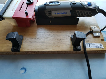 Toto praktické řešení je navrženo pro efektivní uspořádání napájecích kabelů Dremel. Produkt, který funguje jako robustní držák kabelů, se snadno připevní k dřevěným povrchům pomocí šroubů. Jeho primární funkcí je udržovat napájecí kabely úhledně na místě a mimo pracovní prostor. To přispívá k uklizenějšímu a funkčnějšímu prostředí, kde kabely nevytvářejí zbytečný nepořádek nebo překážky. Tím, že napájecímu kabelu poskytuje pevnou polohu, tento držák kabelů pomáhá předcházet zamotání a zlepšuje přehlednost při práci.