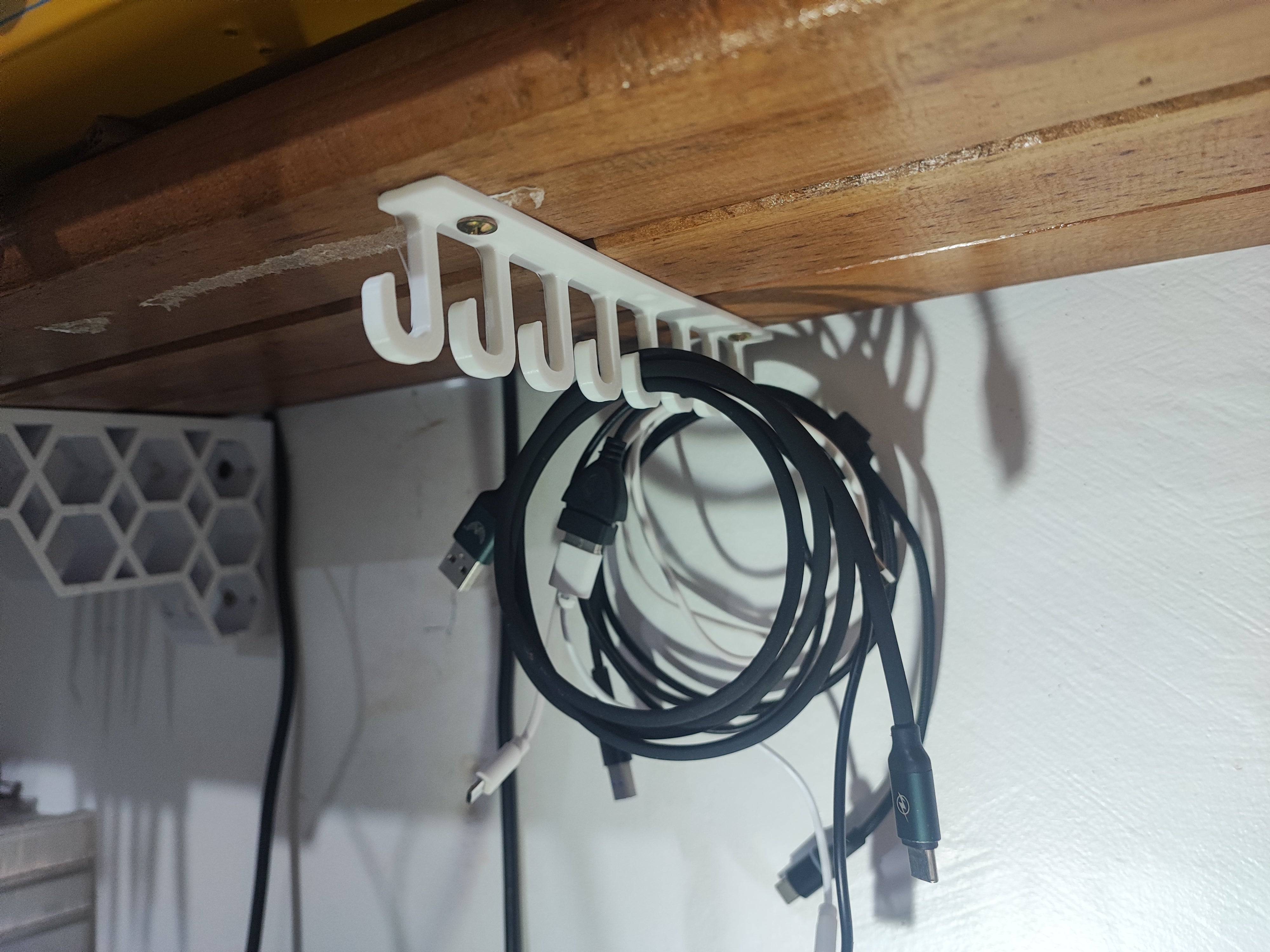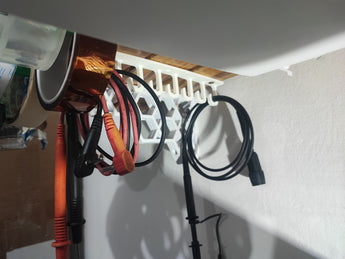 Tento držák kabelů a háček pod policí nabízí praktické řešení pro uspořádání vašich kabelů a vodičů pod stolem nebo policemi. S touto možností závěsu kabelů můžete snadno udržovat svůj pracovní prostor uklizený a bez nepořádku. Diskrétním umístěním pod polici vytvoříte harmoničtější a přehlednější prostor, kde jsou kabely skryté, ale stále snadno dostupné. Tento design je zvláště užitečný například na elektronickém pracovním stole nebo v domácí kanceláři, kde je dobře uspořádané pracoviště zásadní. Produkt pomáhá udržovat vaše elektrické spoje úhledné a bezpečné a funguje jako účinný držák vodičů, aby se zabránilo zamotání vodičů.