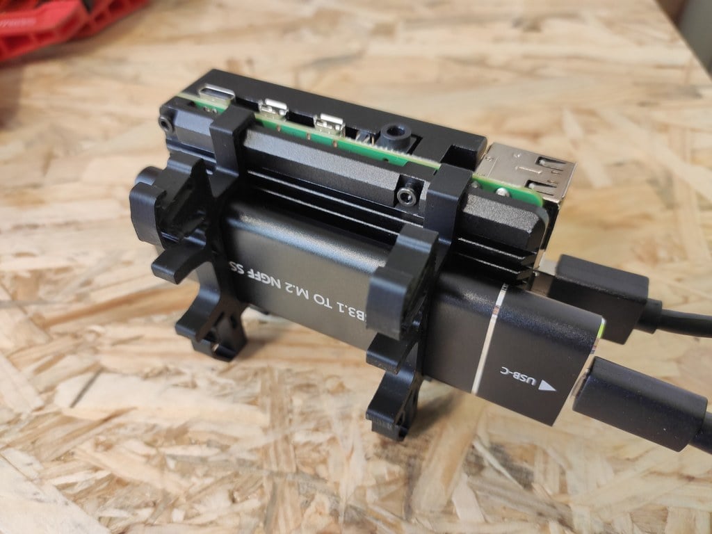 Konzole je navržena tak, aby bylo zachováno efektivní chladicí řešení pouzdra Raspberry Pi's Armor Case, což je nezbytné pro udržení stabilního a optimálního výkonu během provozu. Instalace je jednoduchá; konzola se snadno zacvakne na zadní stranu pouzdra Armor Case bez potřeby šroubů, což zajišťuje rychlé a bezpečné upevnění. Kromě toho je zabudovaná praktická přihrádka pro externí USB3 M.2 disk, která umožňuje rozšířenou kapacitu úložiště přímo vedle vašeho Raspberry Pi.
