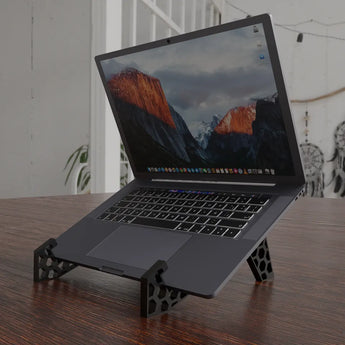 Jednoduchý stojan na notebook/přenosný stojan, který se hodí pro drtivou většinu notebooků. Hodí se jak pro MacBook pro, tak pro MacBook Air. Vyrábí se v tzv. voštinovém provedení a 4 díly do sebe snadno zacvaknou bez použití šroubů či čehokoliv jiného.