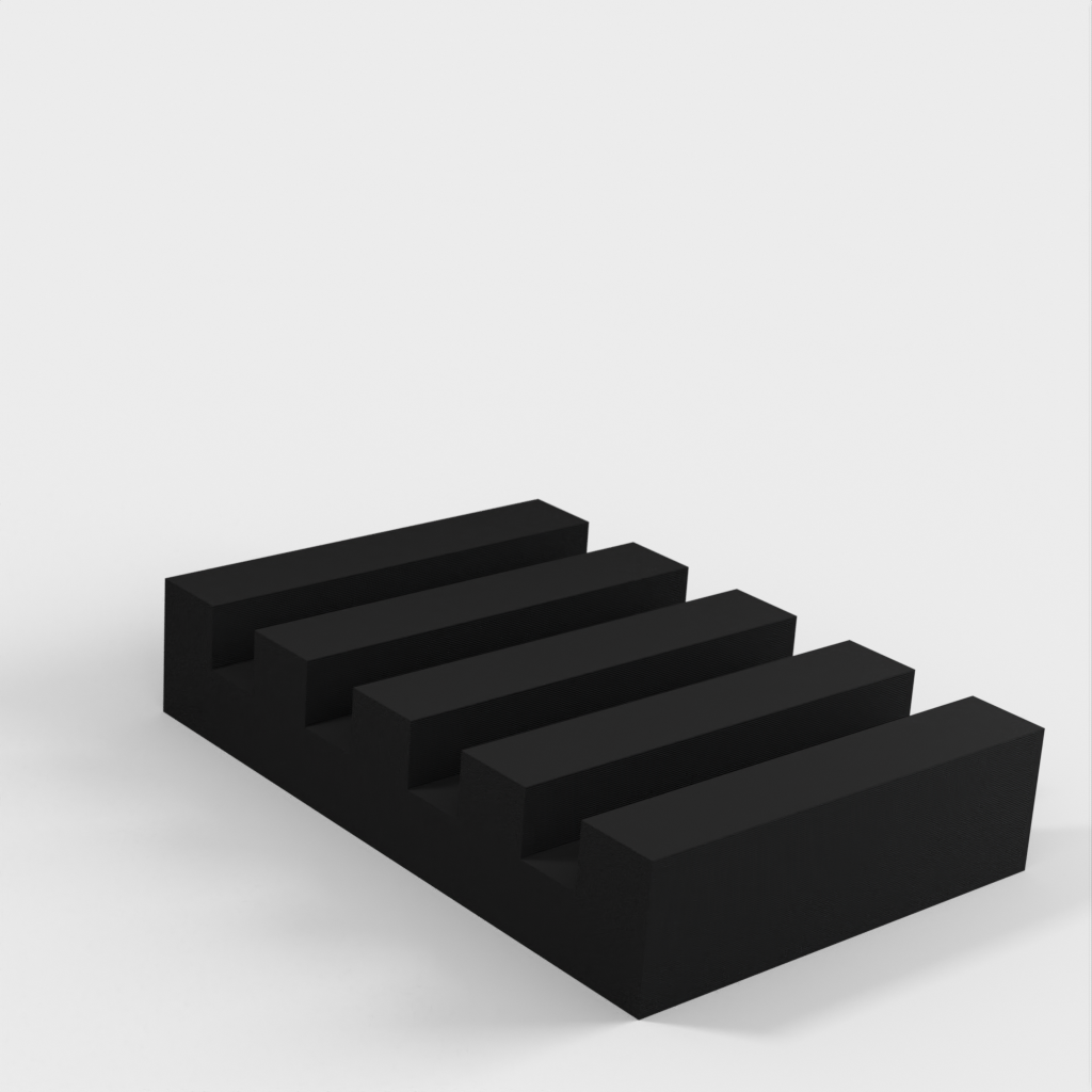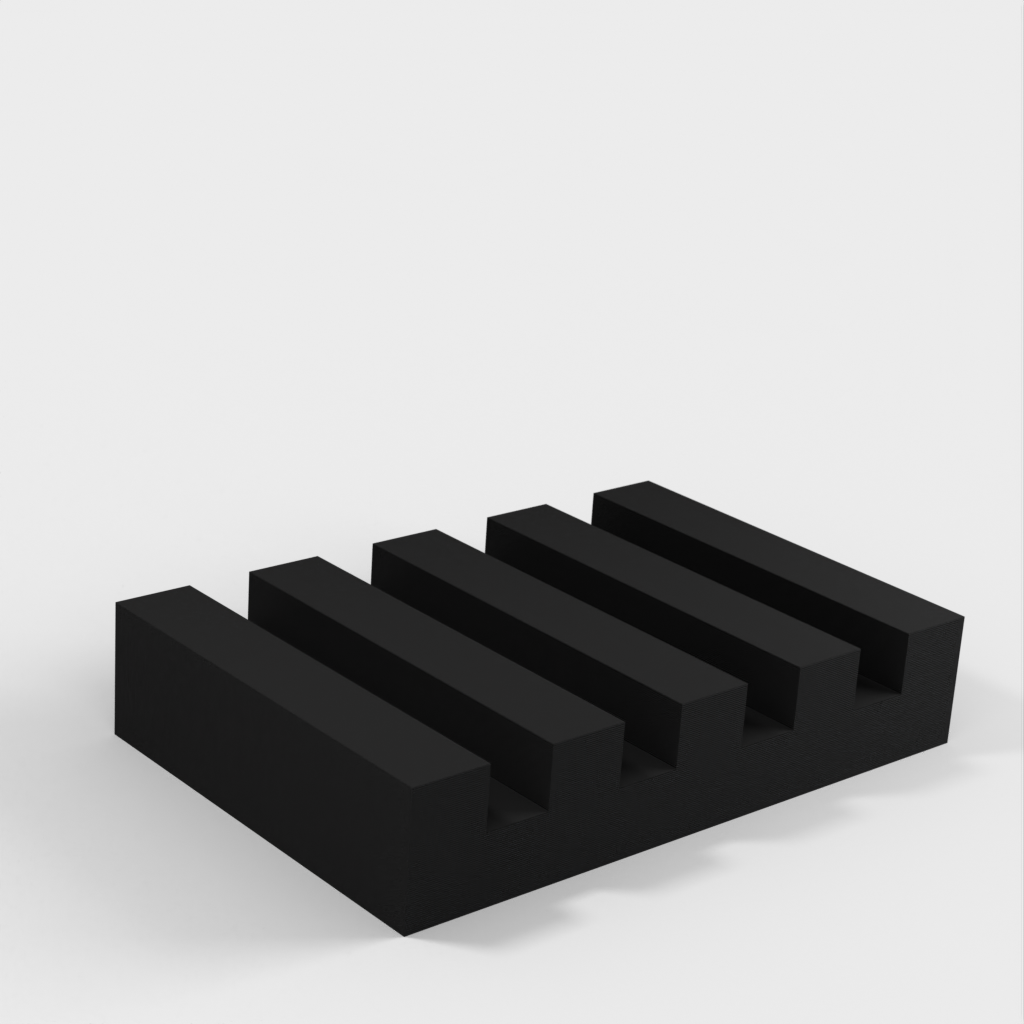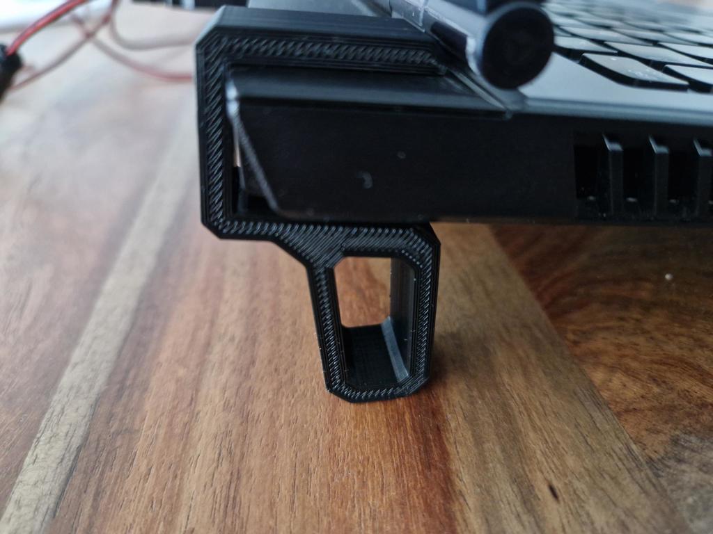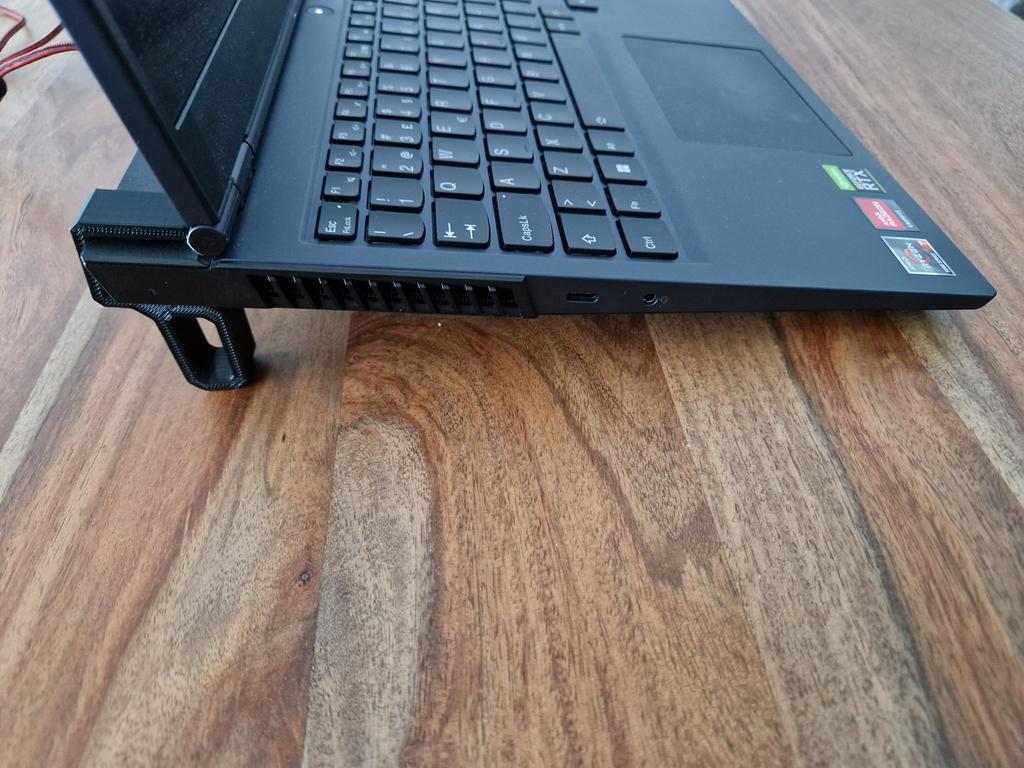 Stojan na notebook určený pro Lenovo Legion 5. Zvednutím zadní části notebooku můžete zlepšit proudění vzduchu z ventilačního systému notebooku. Budete potřebovat vytisknout pár nožiček a také několik malých gumiček, aby nožičky nesklouzly. Nožičky by měly být umístěny na rozích zadní strany, aniž by zakrývaly větrací otvory.
