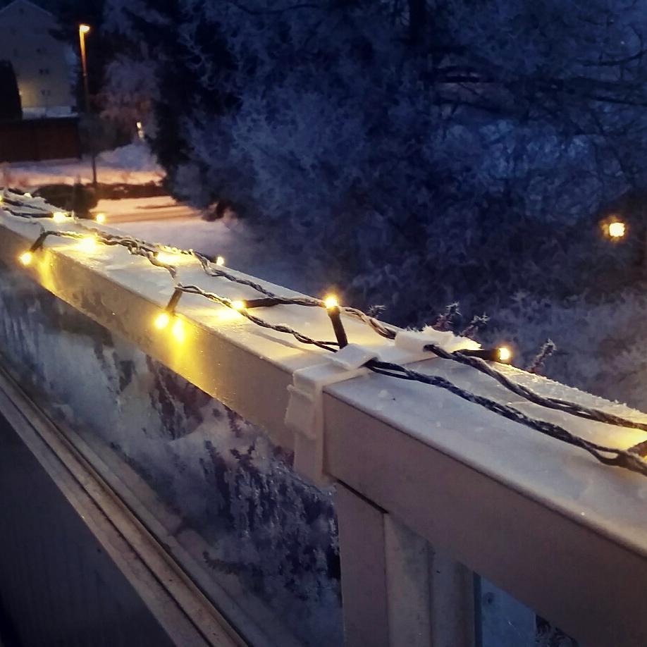 Držák na vánoční světla je speciálně navržen pro montáž na balkonové zábradlí o rozměrech 40x80 mm. Snadno se instaluje a můžete do něj snadno umístit vánoční světla, čímž vytvoříte útulnou atmosféru na vašem balkoně během Vánoc.