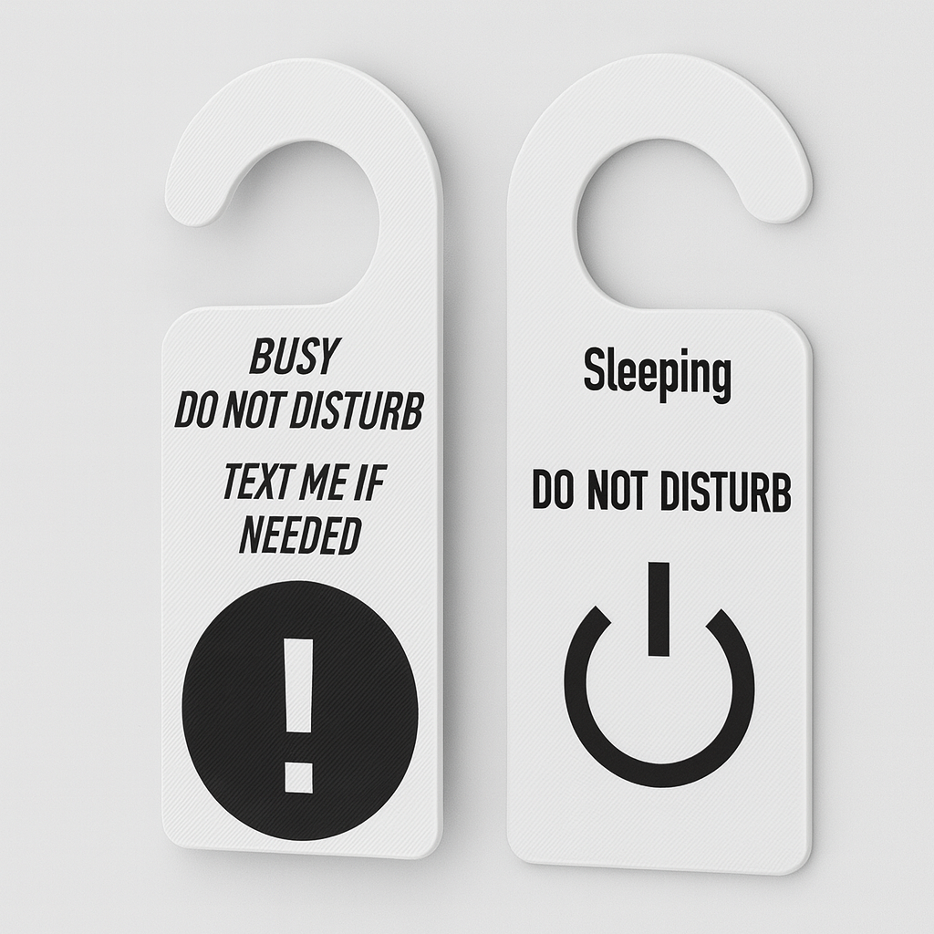 Tato značka je zdvořilý způsob, jak lidem říct, že se soustředíte, pracujete nebo si jen přejete být na chvíli v klidu. Značka dokáže vyjádřit vaše přání, abyste byli ponecháni v klidu, pevným a zároveň zdvořilým způsobem, takže si zachováte klid a harmonii.