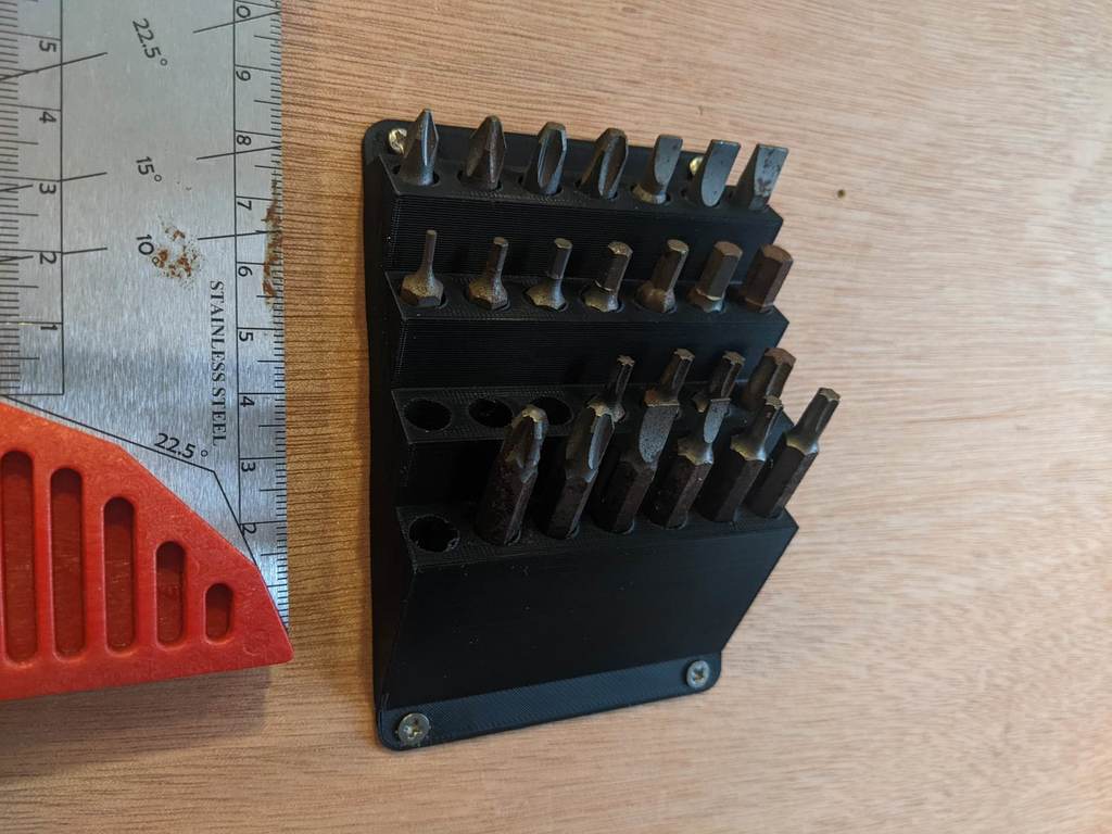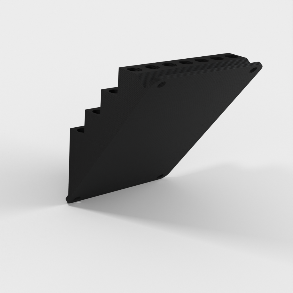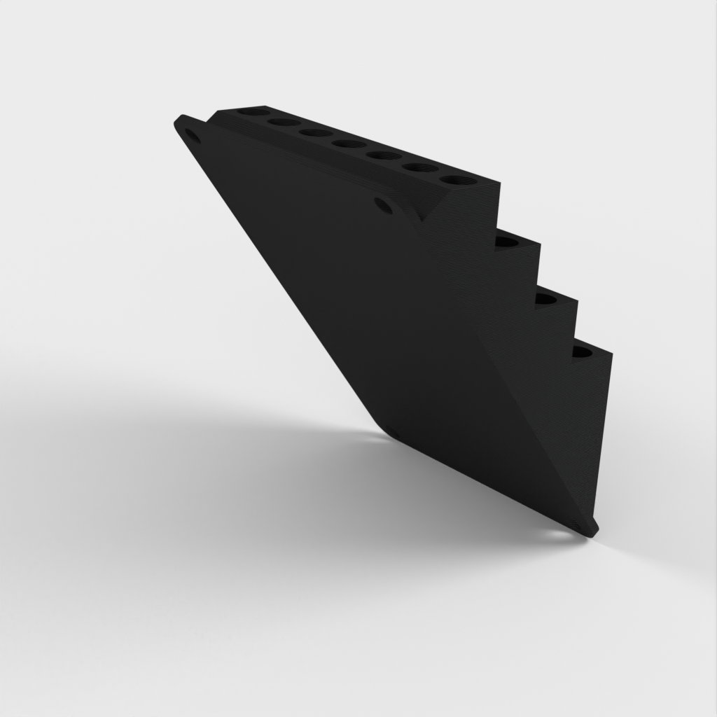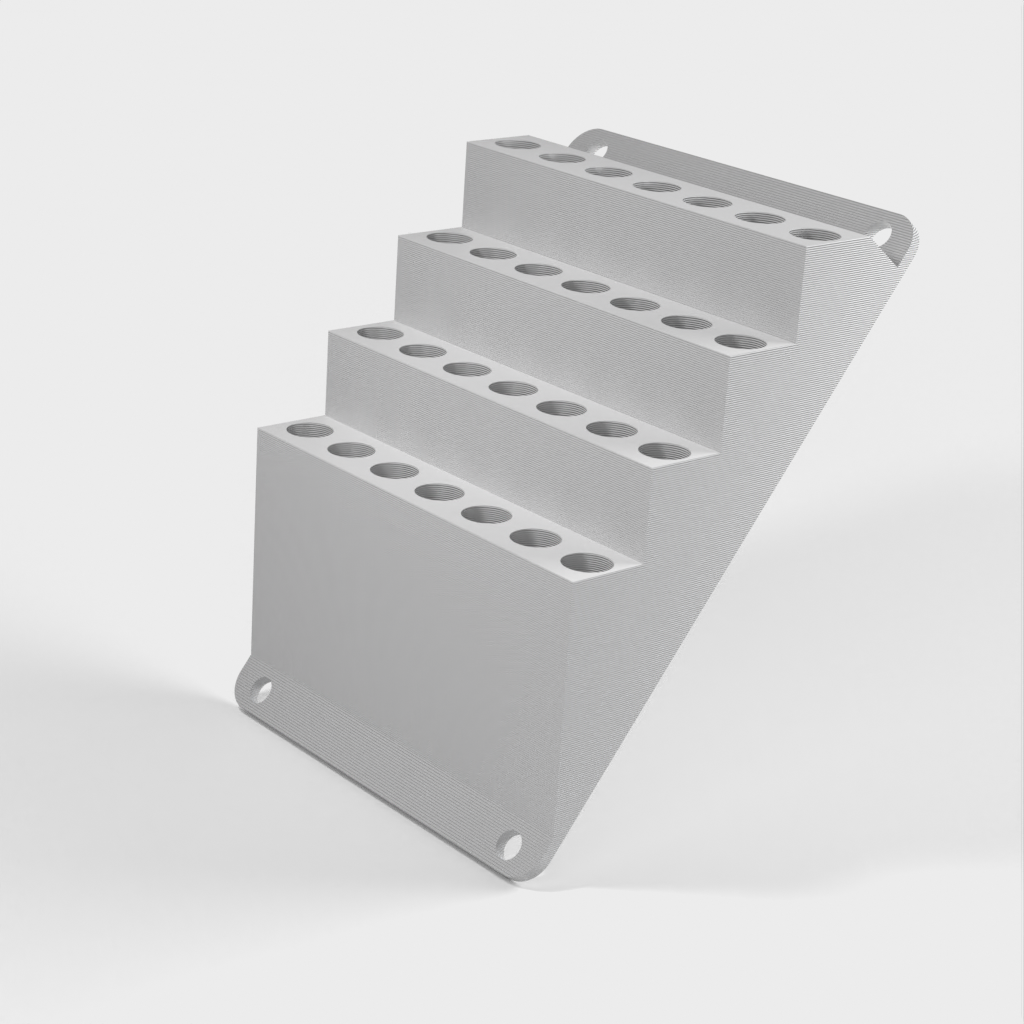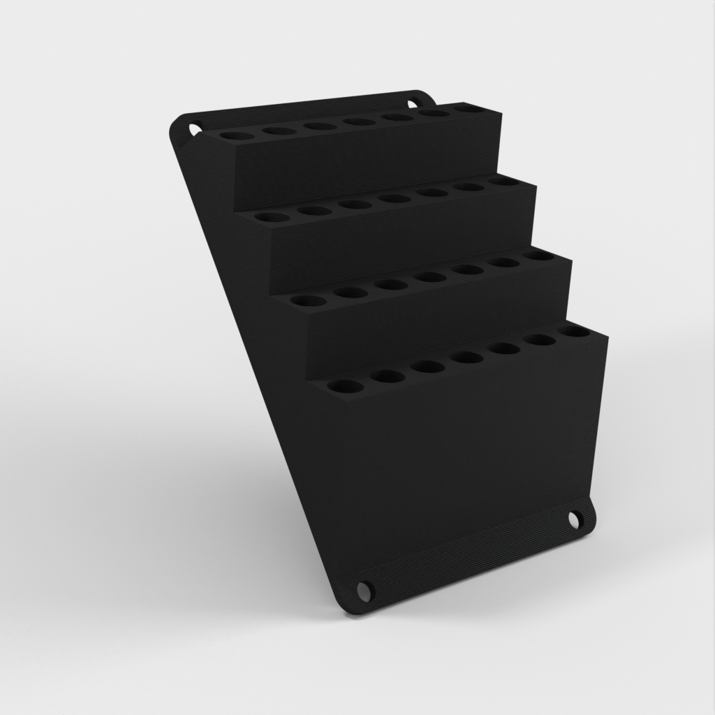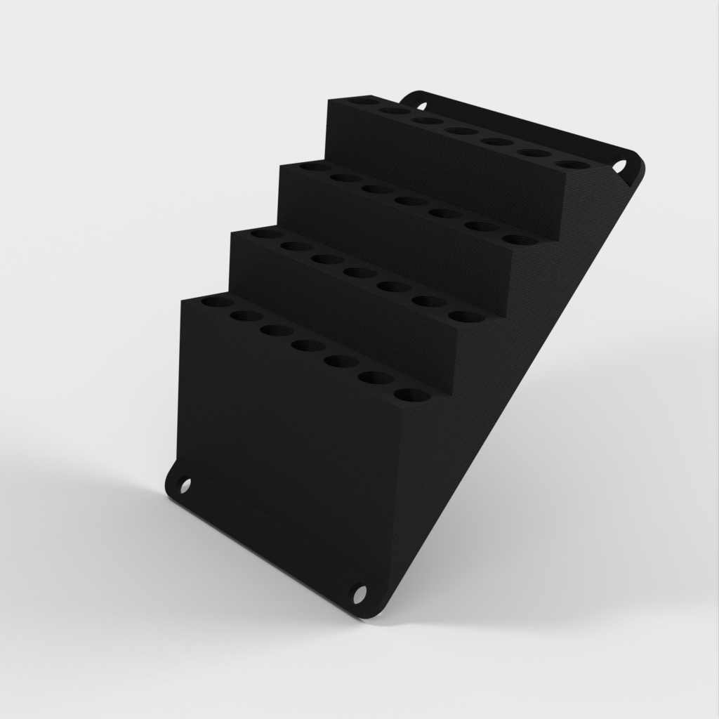 Držák bitů šroubováku 6,35 mm (1/4") pro montáž na stěnu. Produkt obsahuje spodní řadu pro delší bity, zatímco zbývající se používají pro běžné krátké bity. To usnadňuje udržování pořádku ve vaší dílně, kůlně nebo pracovním vozidle.
