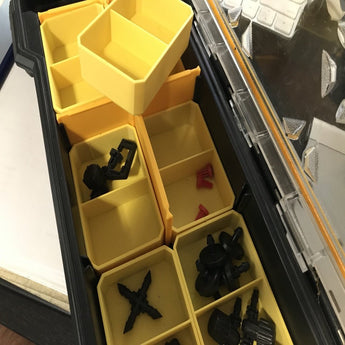 S výškou 25 mm lze tyto vložky stohovat na sebe, což umožňuje rozšířit organizér s 10 přihrádkami na potenciálních 40 přihrádek s 20 vložkami. Nohy vysoké 2 mm zajišťují, že vložky zůstanou stabilně umístěny v organizéru a zabrání jim v pohybu. Po naskládání vložek je zajištěno, že se obsah nevysype ani nesmíchá, i když je organizér uložen na boku nebo dnem vzhůru. To pomáhá udržovat vaše malé díly uspořádané a snadno dostupné.