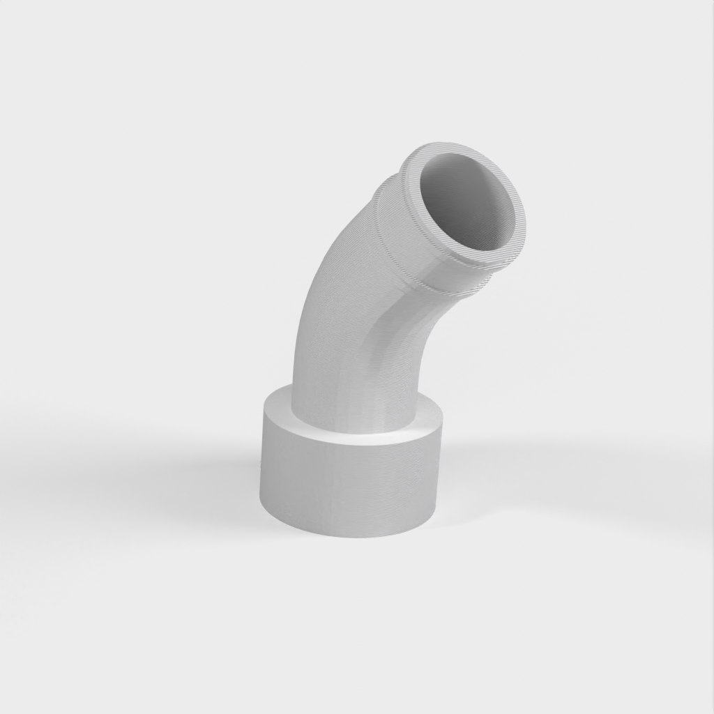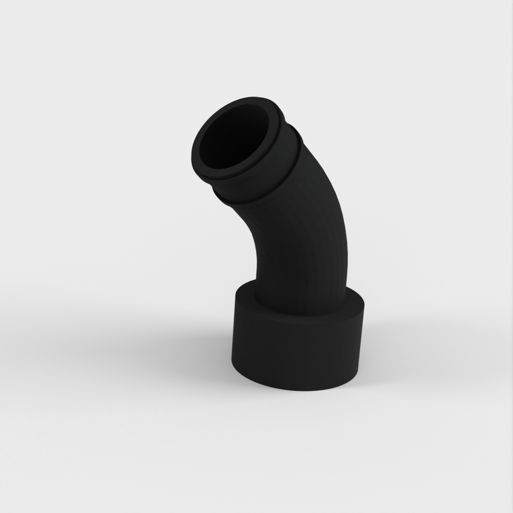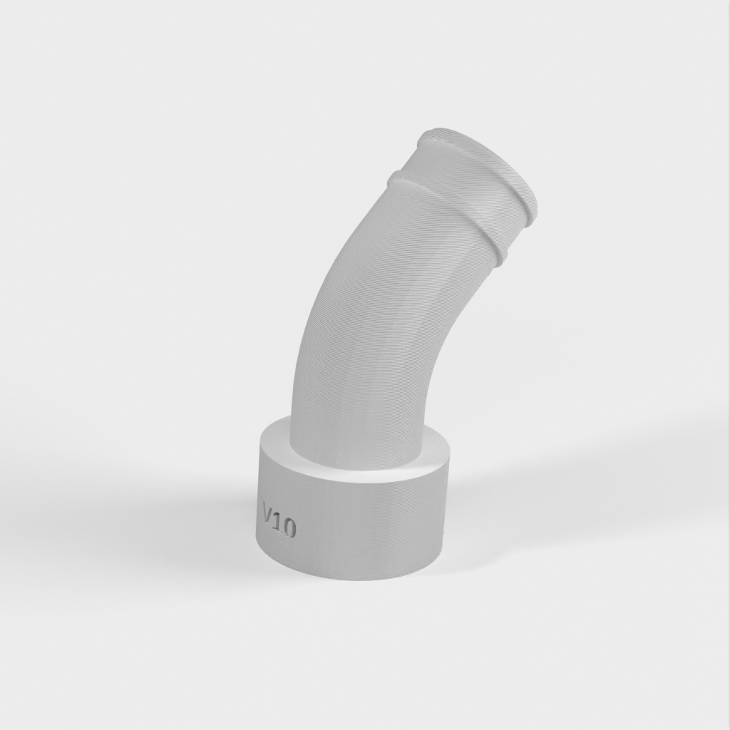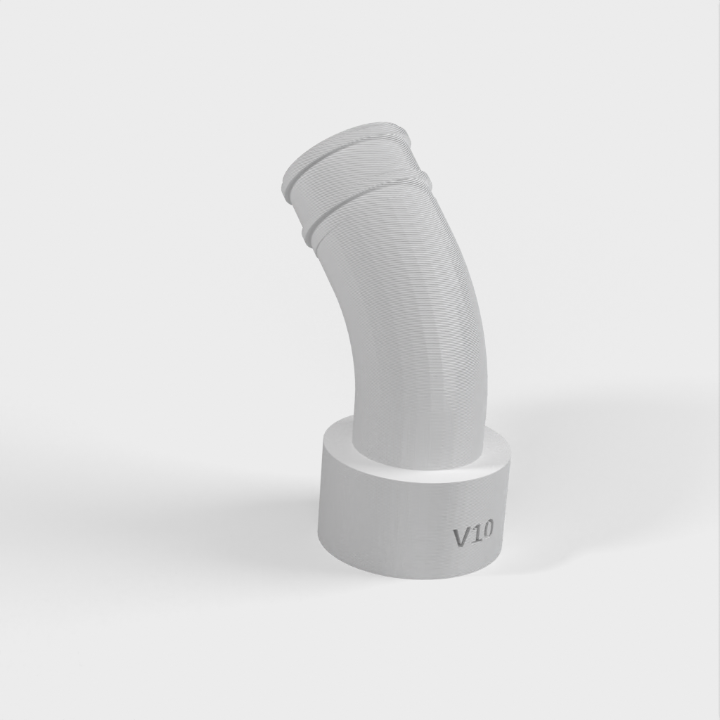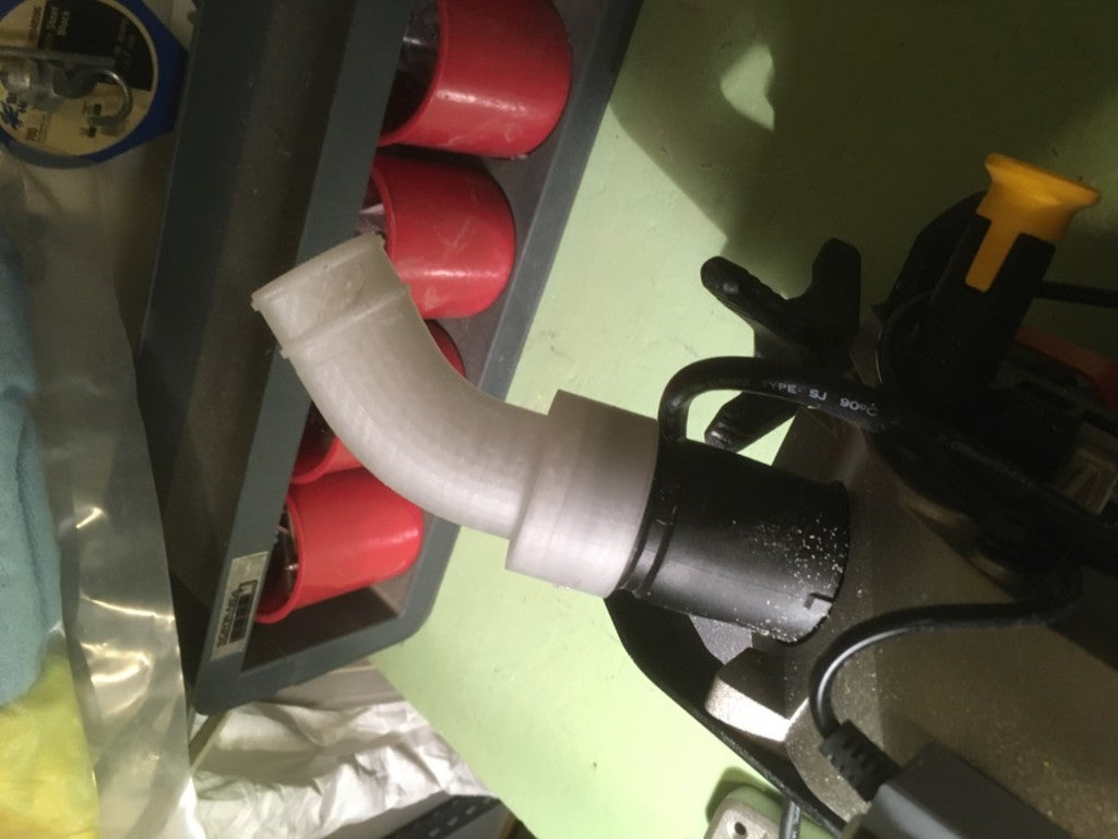Pozdějším používáním spojky jsem zjistil, že by mohl nastat problém, pokud by za pilou nebyl dostatek místa pro pevnou část hadice vysavače. Abych to vyřešil, přepracoval jsem jej s ohybem, aby se dal spárovat přímo s ohebnou hadicí a obešel pevnou část.