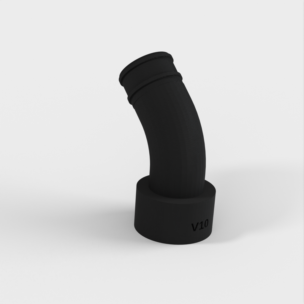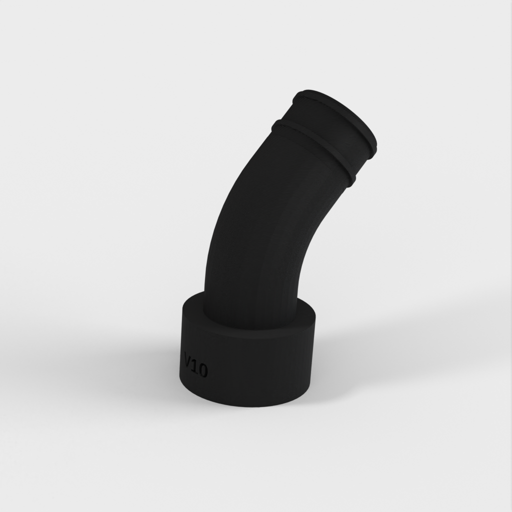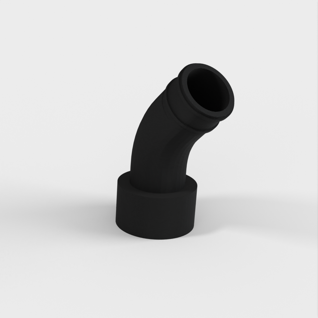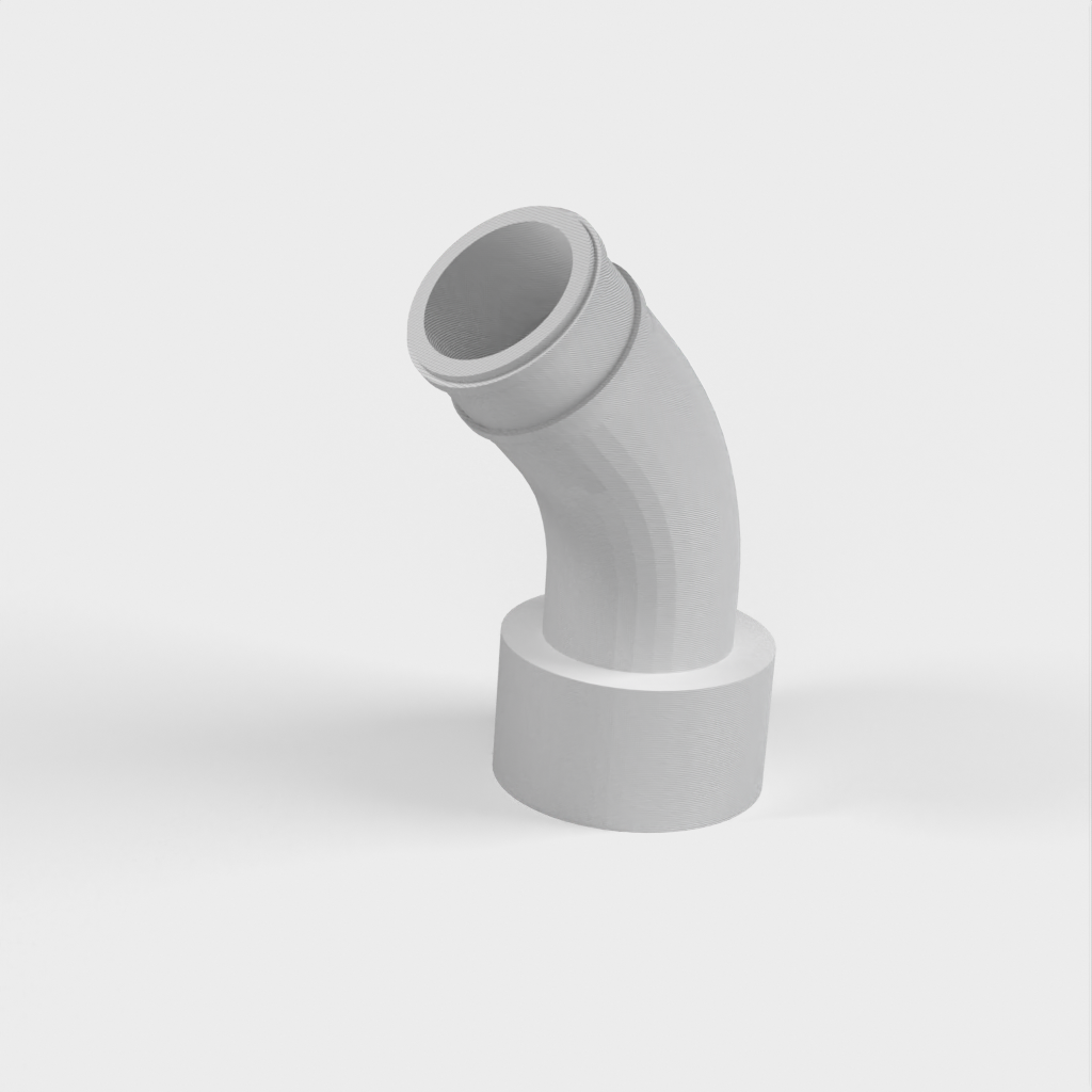 Pozdějším používáním spojky jsem zjistil, že by mohl nastat problém, pokud by za pilou nebyl dostatek místa pro pevnou část hadice vysavače. Abych to vyřešil, přepracoval jsem jej s ohybem, aby se dal spárovat přímo s ohebnou hadicí a obešel pevnou část.