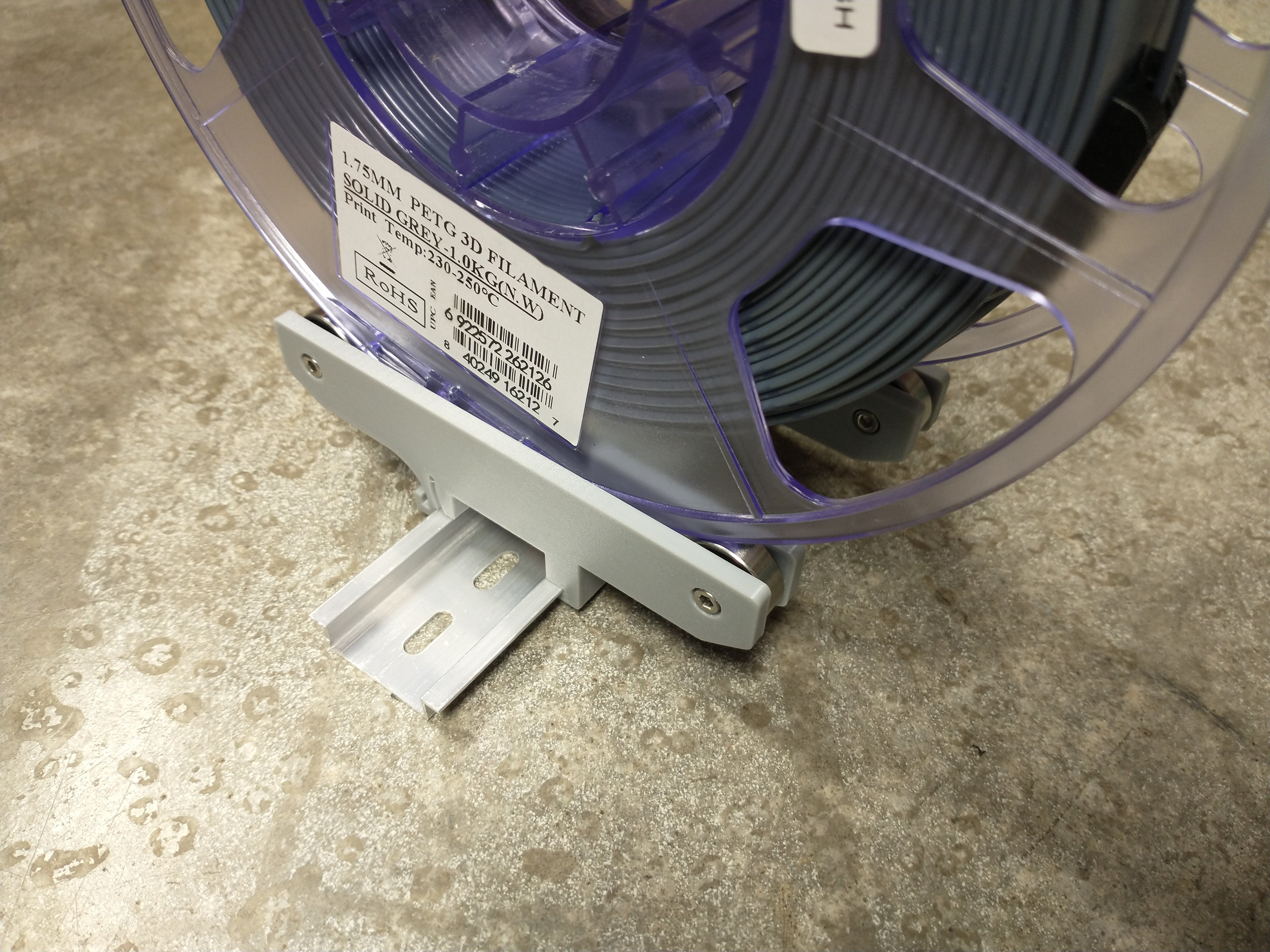 Tento držák cívky se montuje přímo na standardní DIN lištu, takže je ideální pro integraci do ovládacích skříní, polic nebo jiných míst se systémy DIN lišty. Používá 607 kuličkových ložisek, aby byla zajištěna plynulá a bezproblémová rotace cívky filamentu, což je zásadní pro rovnoměrné podávání filamentu během tisku.