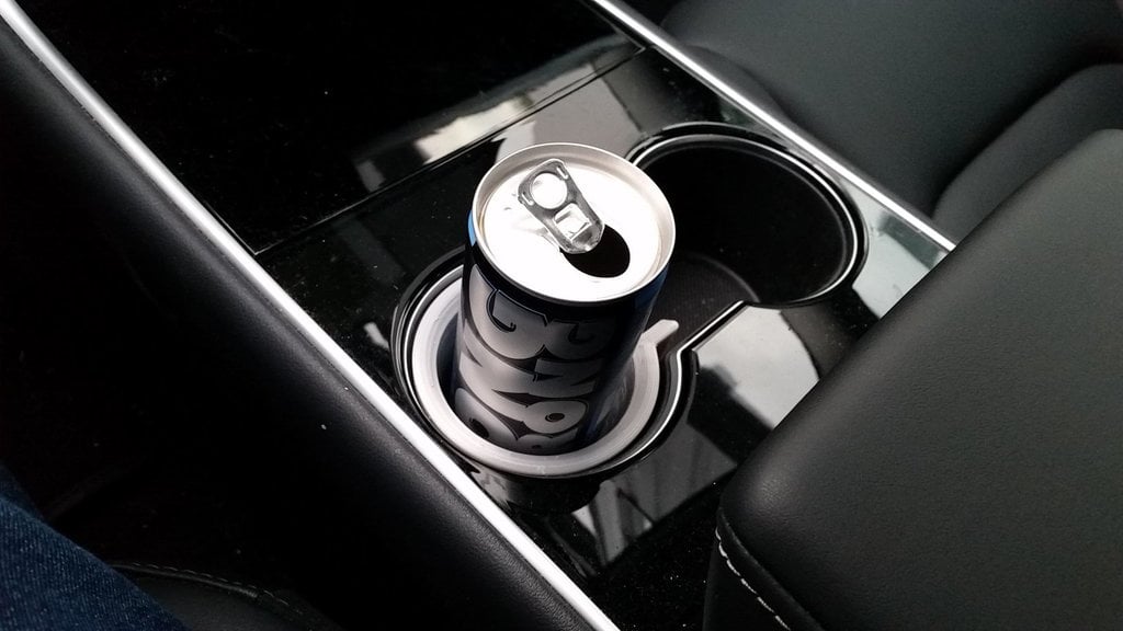 Tento držák na plechovky energetických nápojů je navržen speciálně pro Teslu Model 3. Hodí se jak pro plechovky energetických nápojů o objemu 250 ml (~53 mm v průměru), tak pro plechovky o objemu 330 ml (~58 mm v průměru), a bezpečně je drží, i když sešlápnete pedál až na podlahu. Pokud je však plechovka otevřená a je z více než ~1/3 plná, může se velké množství tekutiny vylít a zničit konzoli mezi předními sedadly, střechu a zadní sedadla vašeho vozu.