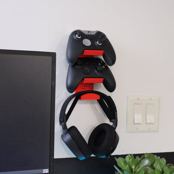 Tento nástěnný držák organizuje váš herní prostor tím, že udržuje dva ovladače (vhodné pro Xbox a PS5) a náhlavní soupravu mimo stůl. Vytváří úhlednou prezentaci vašeho vybavení a zároveň jej udržuje snadno přístupné. Praktické řešení pro skladování, které maximalizuje prostor.