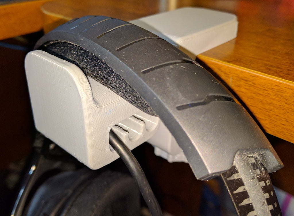 Držák je navržen tak, aby se do něj vešly různé velikosti headsetů a je k dispozici ve dvou variantách: standardní model pro čelenky do 45 mm a širší verze, která se hodí pro čelenky do 55 mm. Jeho hluboké drážky udrží vaše kabely uspořádané a zabrání jejich zamotání, což přispívá k uklizenému nastavení.