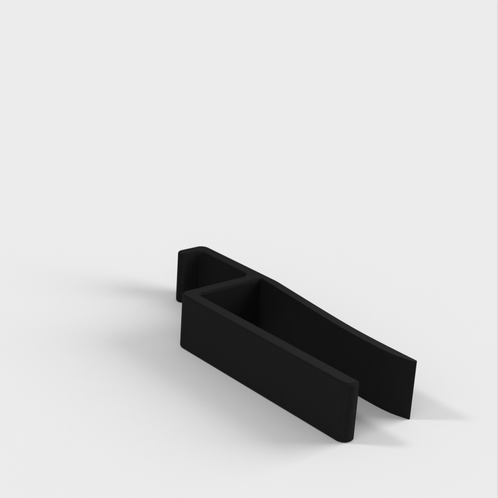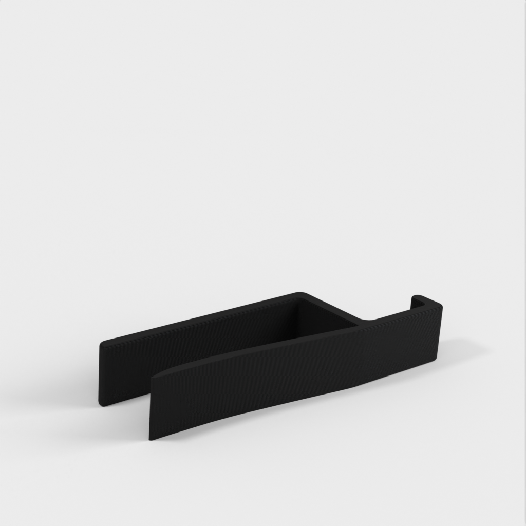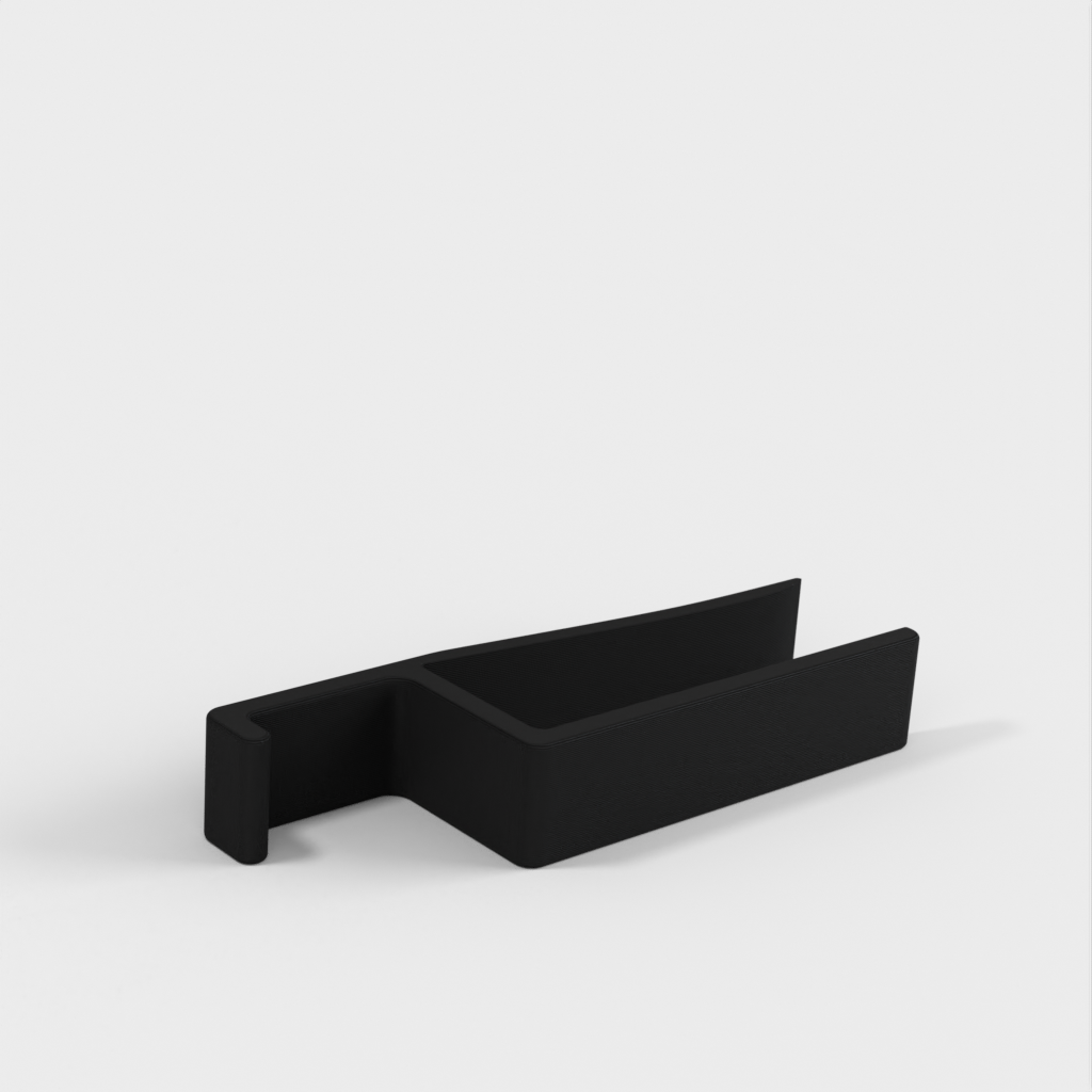 Jednoduchý háček na psací stoly IKEA Bekant. Snadno se posouvá na horní část stolu.