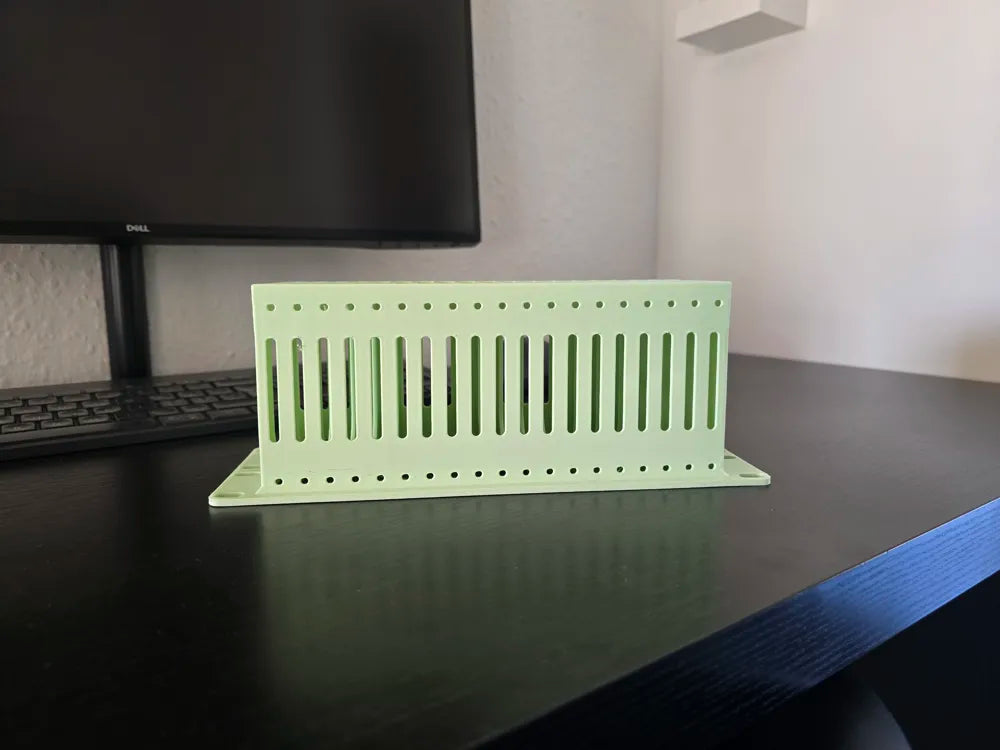 Uspořádejte svůj homelab efektivně s tímto 2U rackovým držákem, který se hodí do 10palcového racku. Držák bezpečně pojme až 19 2,5" SSD disků, čímž zajistí pořádek ve vašem serverovém nastavení. Toto řešení optimalizuje využití prostoru a poskytuje snadný přístup k vašim diskům.