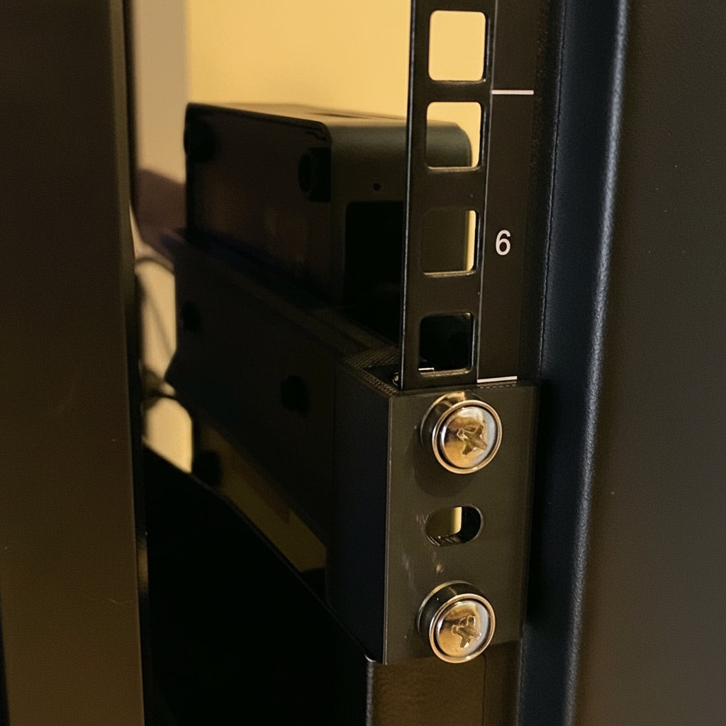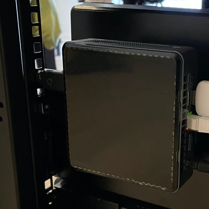 Držák pro montáž Intel NUC do racku na stranu standardního 19" racku. Zadní deska je dostatečně tenká, aby se dala namontovat na NUC pomocí dodaných šroubů.