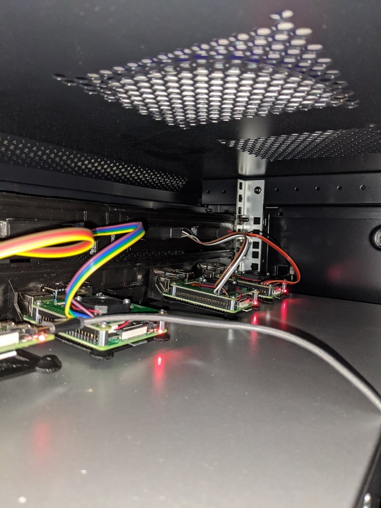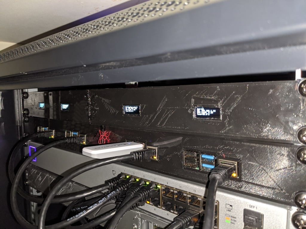 Držák je rozdělen na dvě části, aby se vešel do vaší tiskárny a má další podpěry pro pi. Tento Quad Raspberry Pi Rack Mount bezproblémově funguje jak s oficiálními PoE hat pro napájení, tak s USB připojeními. Šrouby dodávané s kruhovým kloboukem mohou být trochu krátké, takže může být nutné vyvrtat spodní otvory, abyste je zašroubovali do distančních podložek.
