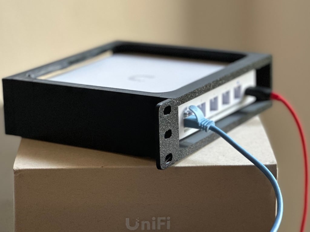 - Rackmontážní držák specificky navržený pro UniFi Gateway Max (UXG-Max) a UniFi Cloud Gateway Ultra (UCG-Ultra).