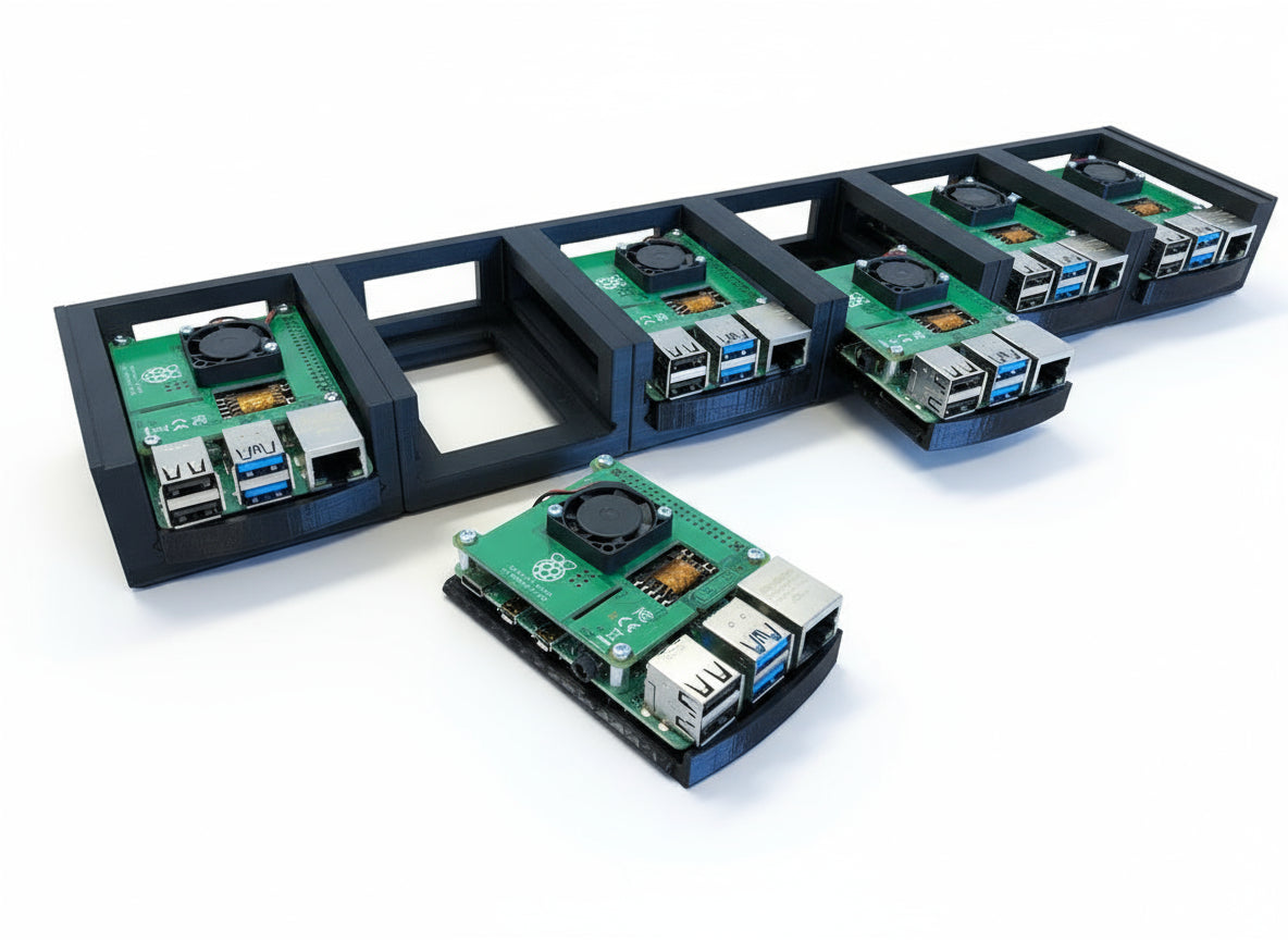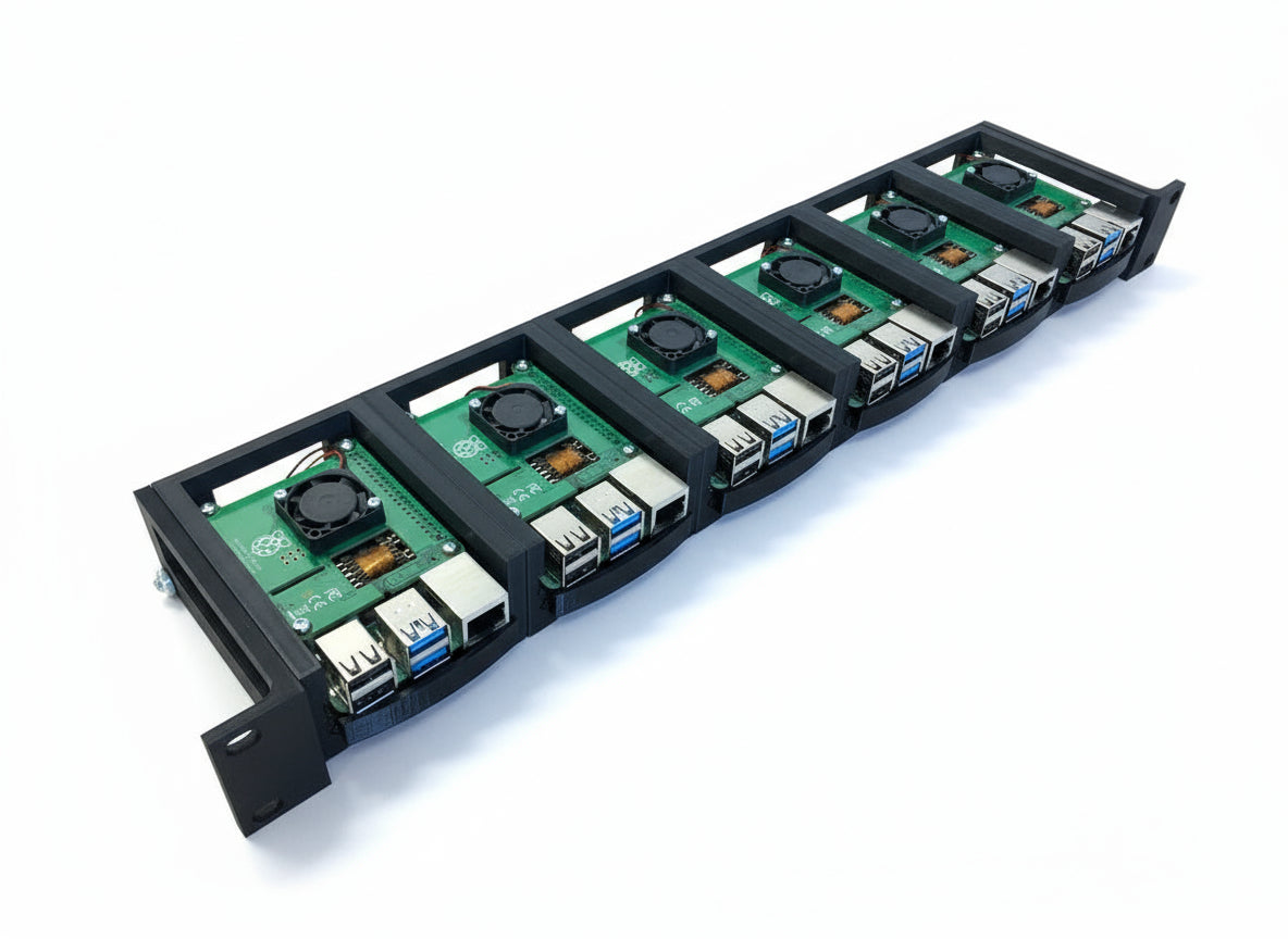 Tato jednoduchá a robustní konzole, která se hodí do 1U 19palcového serverového racku, je ideální pro montáž 6 jednotek Raspberry Pi 4, které používají Power Over Ethernet (PoE). S tímto řešením 1U zůstane váš cluster Raspberry Pi 4 velmi jednoduchý, úhledný a organizovaný. Plná cena zahrnuje nastavení racku pro 6 pi, což zahrnuje 6 dílů rámu, 6 dílů zásobníku a sadu „uší“.