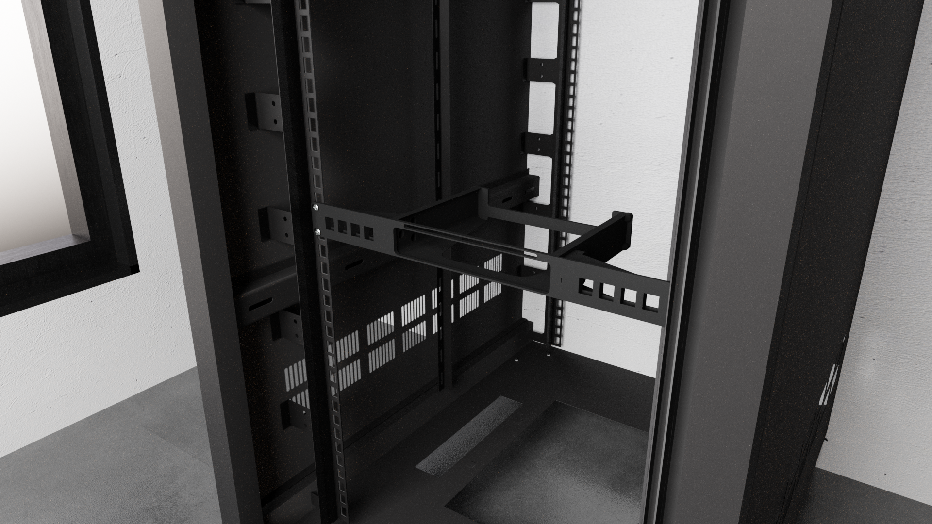 - Navrženo pro bezpečnou montáž UniFi USW Pro XG 8 PoE do standardních 19palcových rackových skříní.