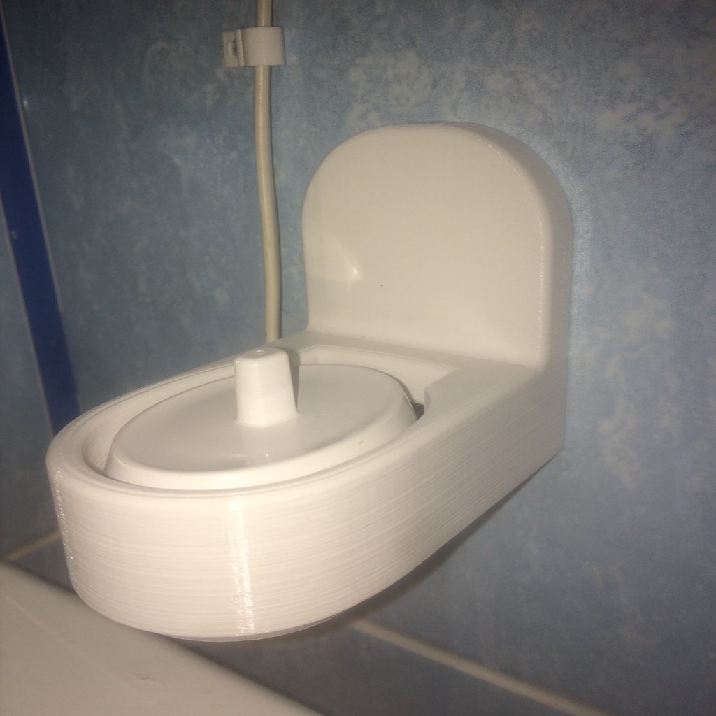 Tento držák na zeď je navržen tak, aby poskytoval praktické a prostorově úsporné řešení pro nabíječku zubního kartáčku Braun Oral-B 3762. Pomáhá udržovat vaši koupelnu uspořádanou tím, že uvolňuje místo na pracovní desce a zajišťuje, že je nabíječka vždy snadno k nalezení. Držák je navržen tak, aby optimálně pasoval na model Braun Oral-B 3762 a lze jej snadno připevnit ke zdi, například pomocí lepicí pistole. Integrovaný odtokový otvor navíc usnadňuje vyjmutí nabíječky z držáku v případě potřeby a přispívá ke snadné údržbě.