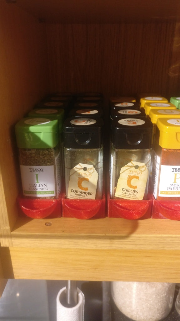 Udržujte svou kuchyň uspořádanou s tímto praktickým držákem na sklenice s kořením, navrženým specificky pro sklenice s kořením značky Tesco. Tento držák poskytuje efektivní řešení pro uskladnění, které zajišťuje, že vaše koření bude vždy po ruce, když je potřebujete. S možností vybrat si mezi verzemi s nebo bez táhla si můžete přizpůsobit držák svým potřebám. Robustní konstrukce je ideální pro každodenní použití a usnadňuje udržování přehledu o vašem koření a bylinkách.