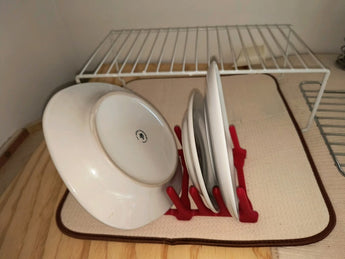 Tento odkapávač na nádobí je praktické a prostorově úsporné řešení pro sušení vašeho každodenního nádobí. Stojan je navržen tak, aby efektivně držel malé talíře, misky a příbory, což přispívá k uspořádanější kuchyni. Jako funkční držák podporuje přirozené sušení na vzduchu a lze jej snadno umístit vedle dřezu nebo na kuchyňskou linku. Minimalistický design z něj činí diskrétní, ale vysoce užitečný prvek v kuchyni, který podporuje bezproblémový proces sušení nádobí. Pro optimální stabilitu se doporučuje opatrnost u většího nebo těžšího nádobí, protože tento stojan je primárně optimalizován pro menší předměty.