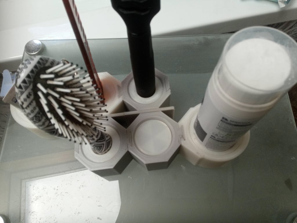 Udržujte si pořádek v koupelně s tímto modulárním organizérem do koupelny. Tato sada se skládá z několika různých komponentů, včetně držáků vložek, nástěnné montáže a různých víček a krytů. Držáky jsou k dispozici ve dvou velikostech - standardní a verze XXL, která je ideální pro větší předměty. Pro estetičtější vzhled a snadnější čištění obsahuje sada také víčka a vložky matic.