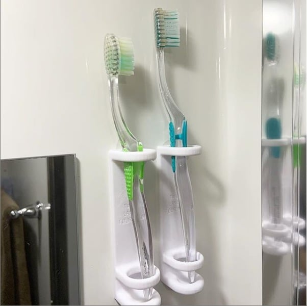 Toto je jednoduchý držák na zubní kartáček, který je navržen tak, aby pasoval na většinu zubních kartáčků. Snadno se instaluje na jakýkoli rovný povrch pomocí jediného příkazového proužku. Tento design drží váš zubní kartáček na místě a dokonce se snadno čistí! Používal se v obytném voze na cestách a zubní kartáček stále nevypadává. Díky zaobleným hranám a prohlubni, kde zubní kartáček stojí, je velmi snadné setřít přebytečnou zubní pastu nebo vodu, která se může časem nahromadit. Doufám, že vám to bude užitečné!