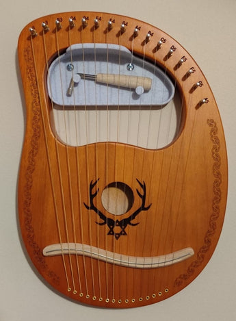 Nástěnný držák na lyru Harfu je praktický držák pro vaši lyru. S tímto držákem lze vaši harfu pohodlně připevnit na zeď a vystavit. S harfou si můžete uložit i nástroj na ladění, protože pro tento účel bylo rozhodnuto přidat několik malých vložek. Montáž je jednoduchá a bezpečná pomocí několika malých otvorů vytvořených pro montáž na stěnu. Ideální pro ty, kteří mají 16strunnou lyru Harfu, která má podobný tvar a velikost.