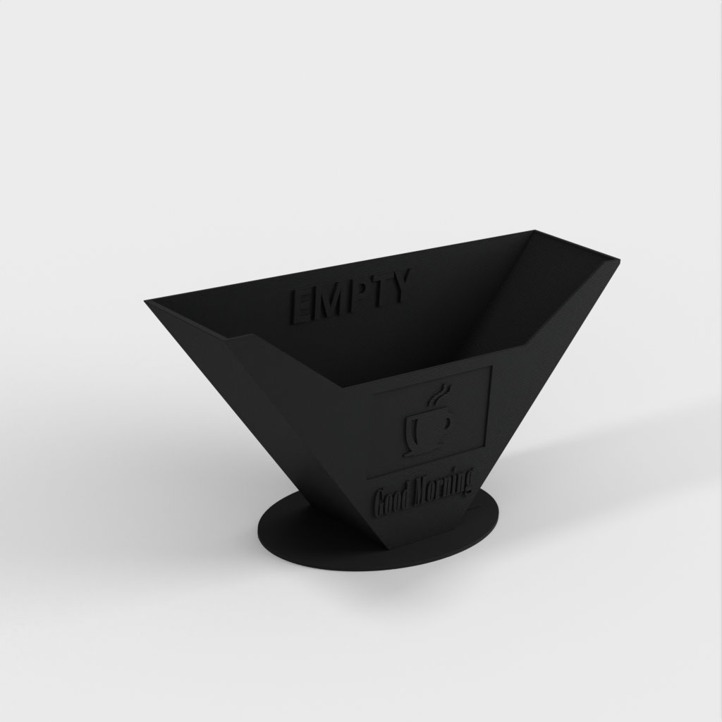 Toto je držák kávového filtru, který jsem vyrobil v 3D builderu. Je navržen tak, aby držel váš kávový filtr na místě při přípravě ranního šálku kávy. Velmi snadno se používá a hodí se pro většinu standardních kávových filtrů.