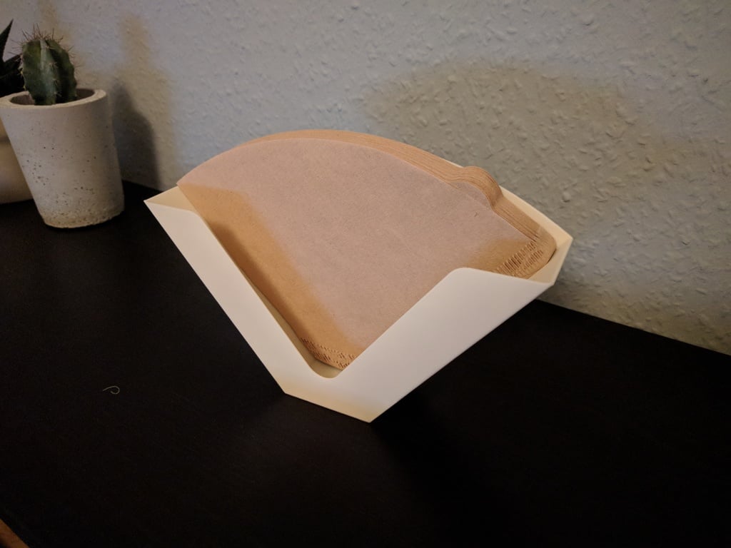 Jedná se o držák na kávové filtry, který lze přišroubovat na vnitřní stranu skříňky nebo na zeď. Usnadňuje přehled o kávových filtrech a umožňuje jejich snadný přístup, když si potřebujete uvařit kávu.