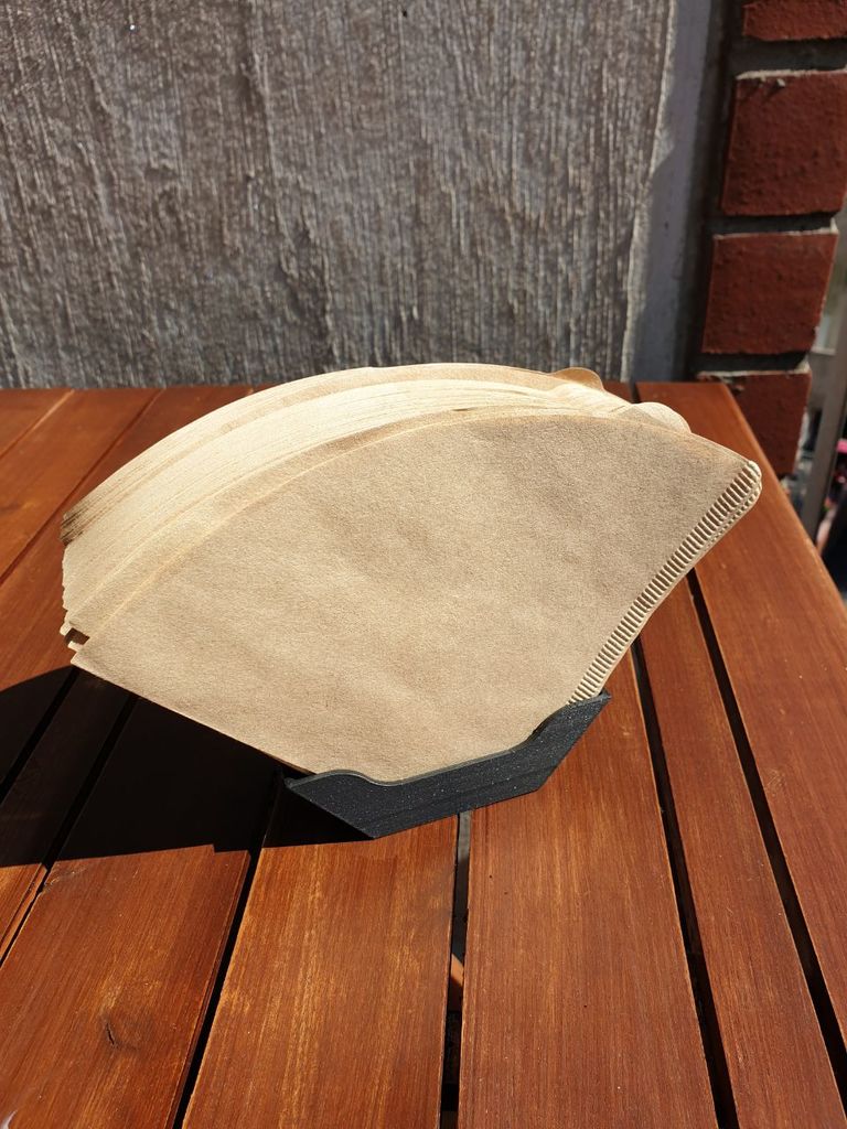 Držák kávového filtru pro filtr velikosti 4 používaný pro kávovary Moccamaster. Tento držák usnadňuje skladování a snadný přístup ke kávovému filtru, díky čemuž je proces vaření kávy organizovanější.