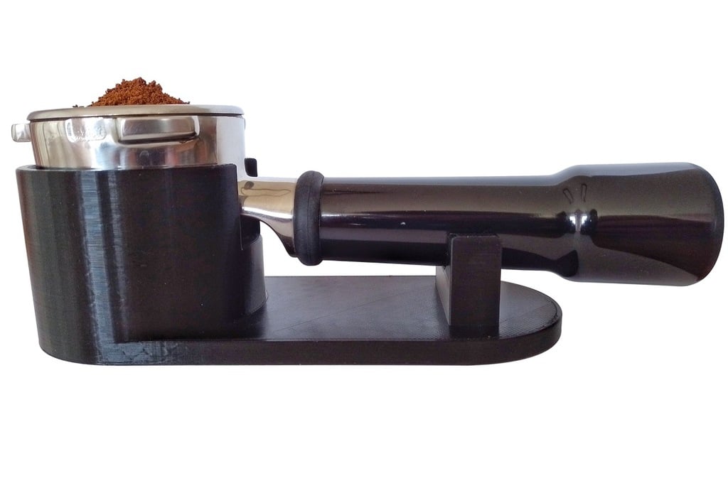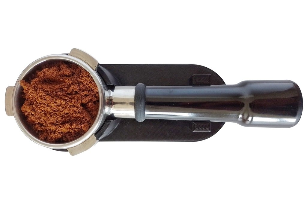 Portafiltr spočívá v této tamperové stanici zcela bez opory, což nevyžaduje, abyste jej při stlačení drželi. Samozřejmě ji lze použít i jako stabilní stojan při nabírání mleté kávy, pokud nepoužíváte mlýnek a násypku.