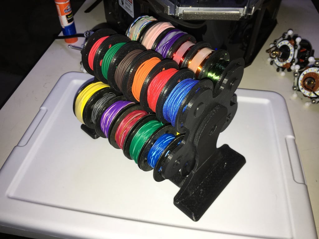 Design umožňuje montáž na stěnu, čímž se uvolní cenné místo na stole například v dílně, dílně nebo hobby místnosti. Díky otočné funkci je snadné rychle a efektivně najít a vybrat požadovanou cívku drátu. Jako praktický organizér kabelů pomáhá udržovat přehled o vašich materiálech a funguje jako efektivní držák drátů pro různé projekty.