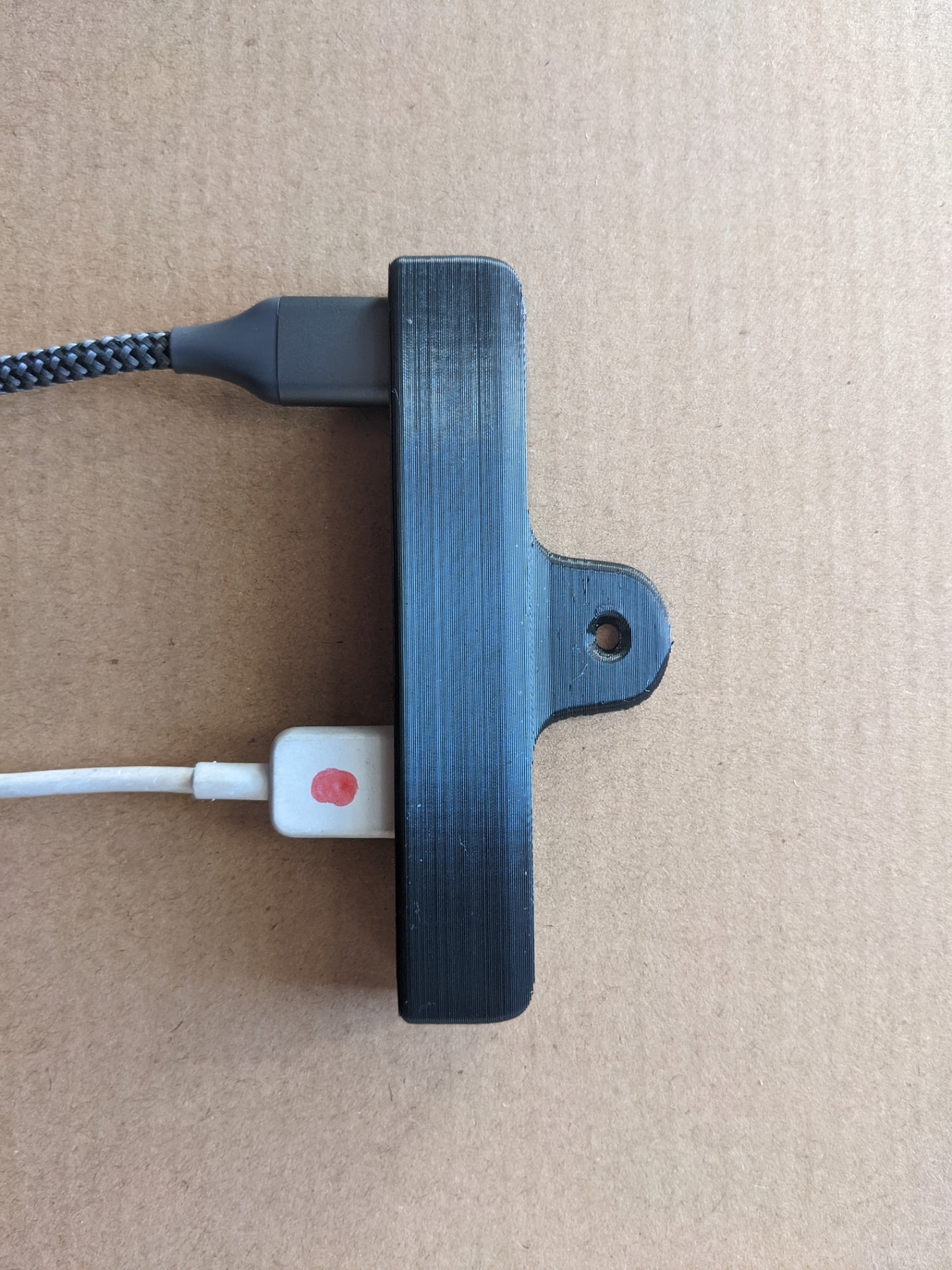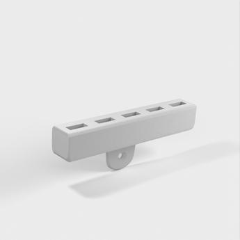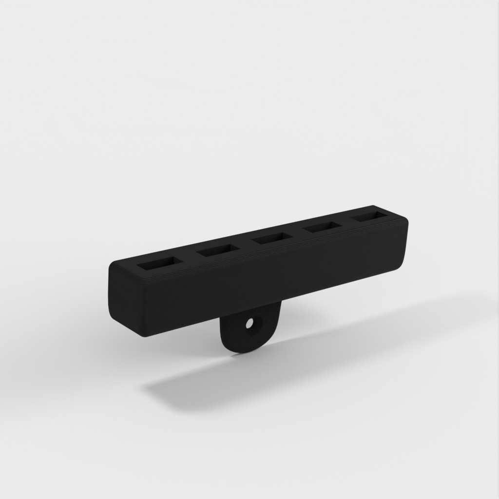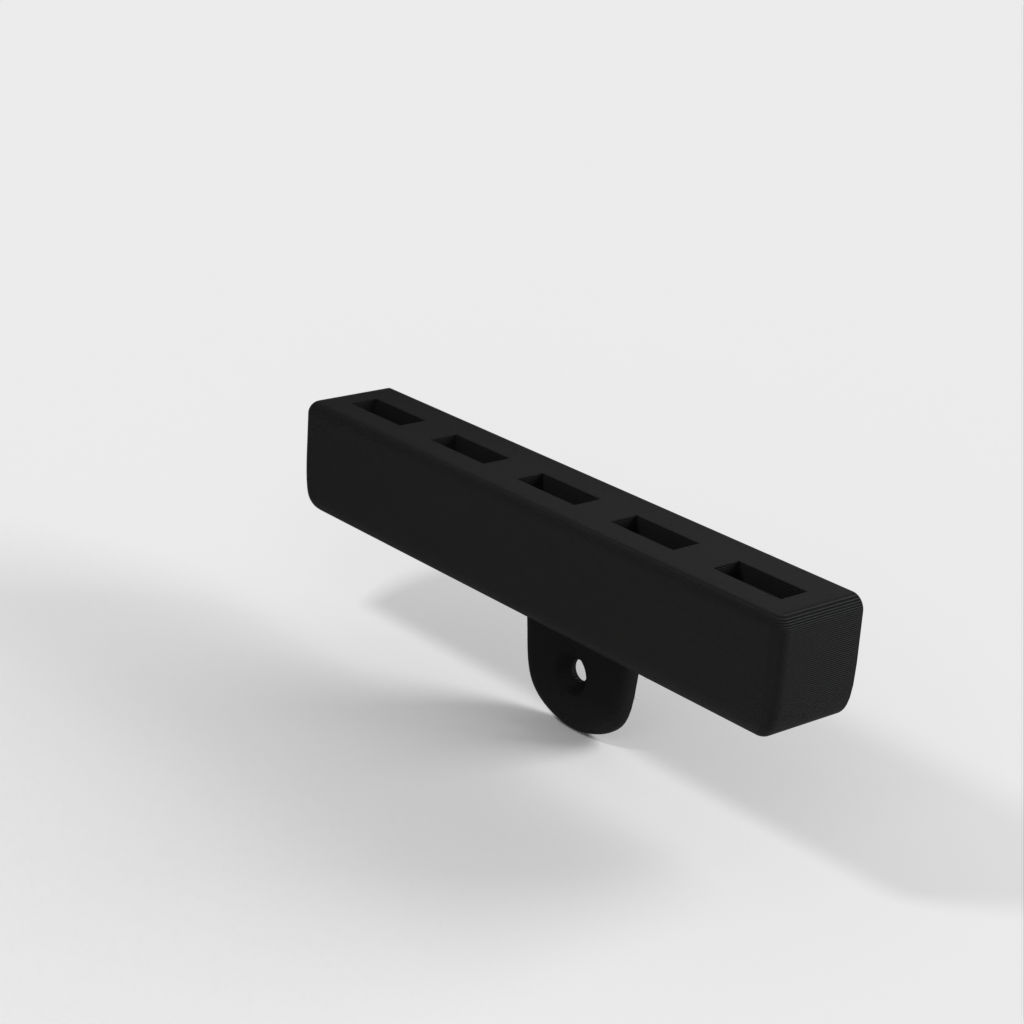 Tento držák USB s prostorem pro 5 kabelů je určen k zavěšení na stěnu vedle pracovního stolu, aby vám kabely nepřekážely, ale byly snadno dostupné. Výrobek je určen k zavěšení směrem dolů a ke stěně se připevňuje pomocí šroubů. Při přišroubování ke zdi je třeba být trochu opatrný, aby nedošlo k rozštípnutí horní části.