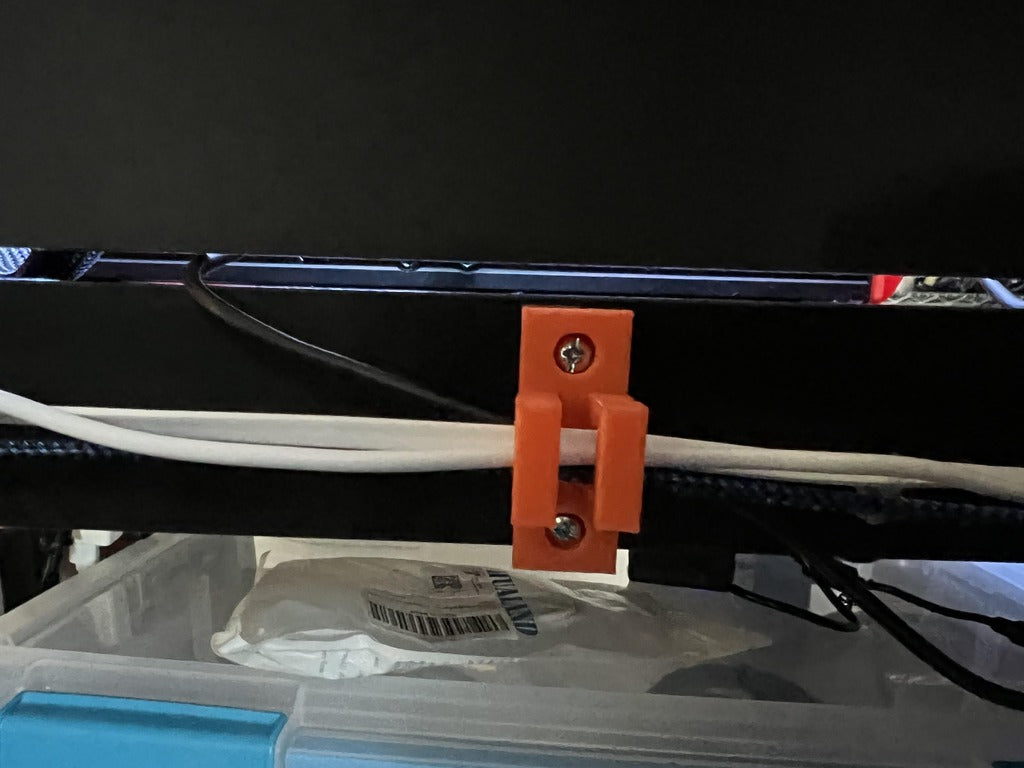 Toto je kabelová spona pro vedení kabelů, která se velikostně hodí na boční stranu pracovní desky nebo nohy IKEA LACK. Pomáhá udržovat pořádek v kabelech a snižuje nepořádek na pracovišti.