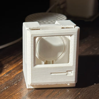 Tato nabíjecí dokovací stanice přináší dotek retro šarmu na váš psací stůl nebo noční stolek díky svému ikonickému designu Macintosh z 80. let. Je speciálně navržena pro držení a nabíjení vašich 42mm hodinek Apple Watch, čímž zajišťuje bezpečné a stabilní umístění během nabíjení.